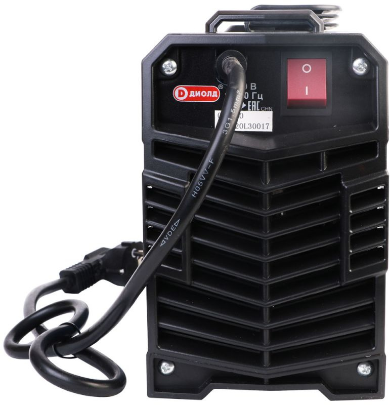 | Особенности | Компактный размер и малый вес в сочетании с большой мощностью аппарата. Регулятор установки значения диаметра электрода. Цифровой дисплей, отображающий величину сварочного тока. Постоянное значение сварочного тока независимое от напряжения сети. Металлический корпус защищает от внешних повреждений. |