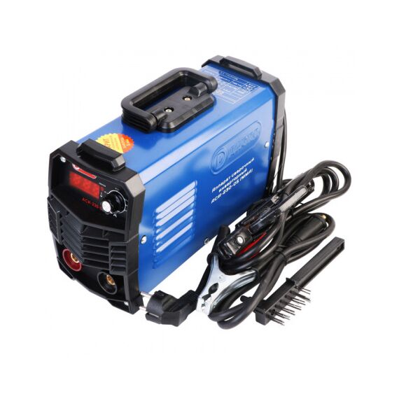 | Особенности | Компактный размер и малый вес в сочетании с большой мощностью аппарата. Регулятор установки значения диаметра электрода. Цифровой дисплей, отображающий величину сварочного тока. Плавная регулировка сварочного тока от 20-230 А. Постоянное значение сварочного тока независимое от напряжения сети. |