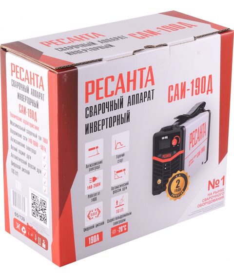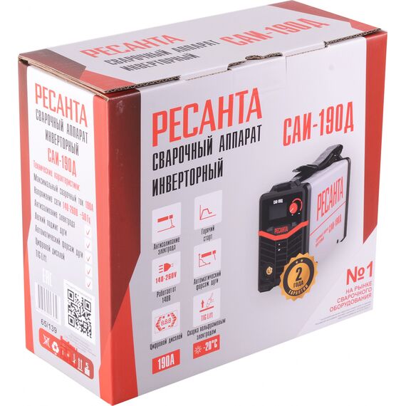 Сварочный аппарат инверторный РЕСАНТА САИ-190Д MMA, TIG LIFT, 140 - 260В, 20 – 190 А, ПВ - 70%