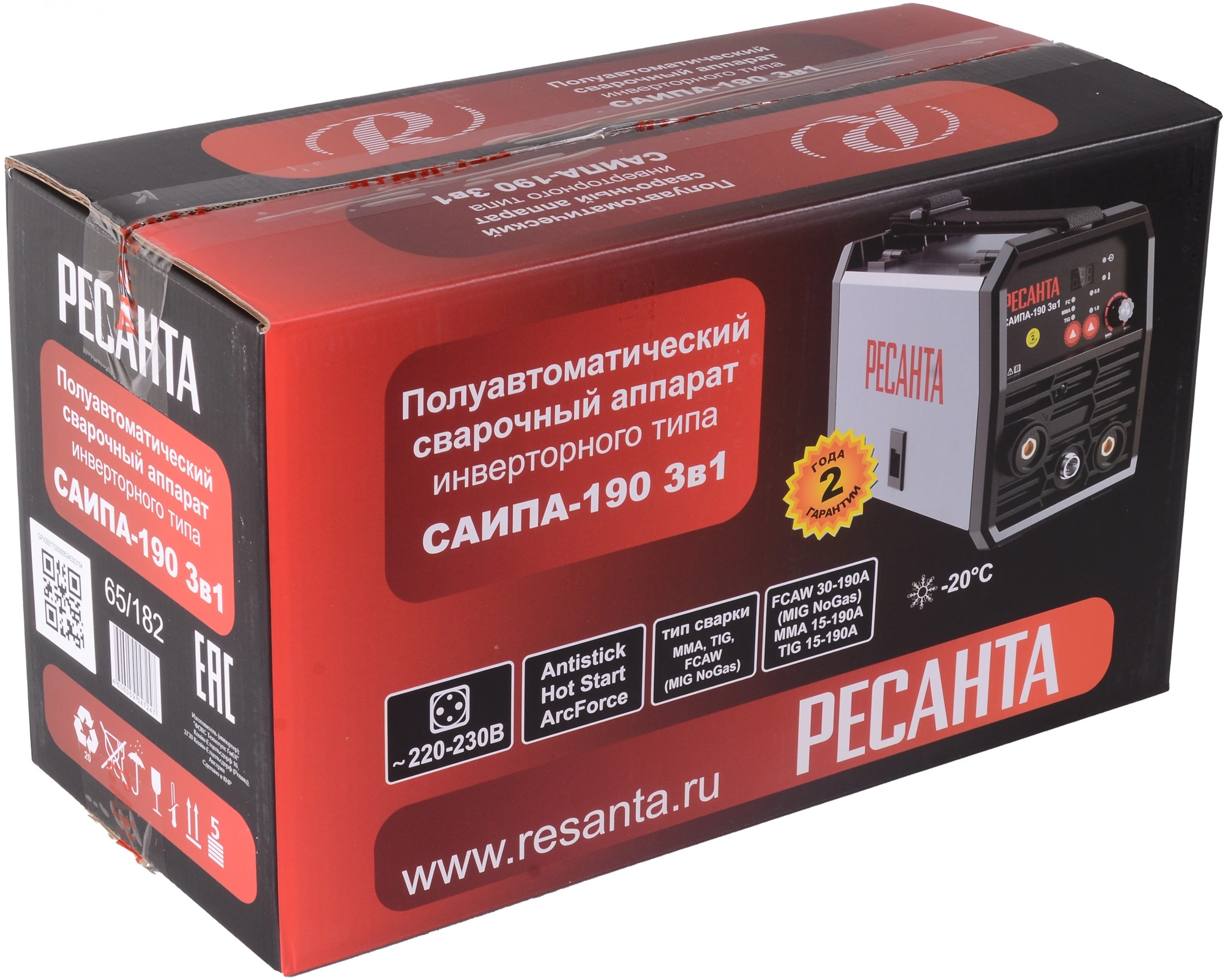 Сварочный полуавтомат РЕСАНТА САИПА-190 3в1 (MIG/MAG) инвертор, MMA, TIG, FLUX, 140-270 В, 15 – 190 А, ПВ - 70%