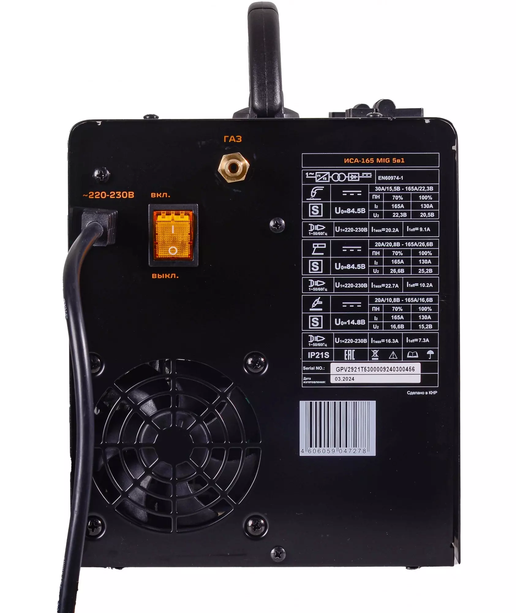| Сварочный ток, макс | 165 A |