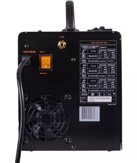 Сварочный полуавтомат Вихрь ИСА-165 MIG инвертор, MIG 5 в 1, 155 - 280В, 20 – 165 А, ПВ - 70%