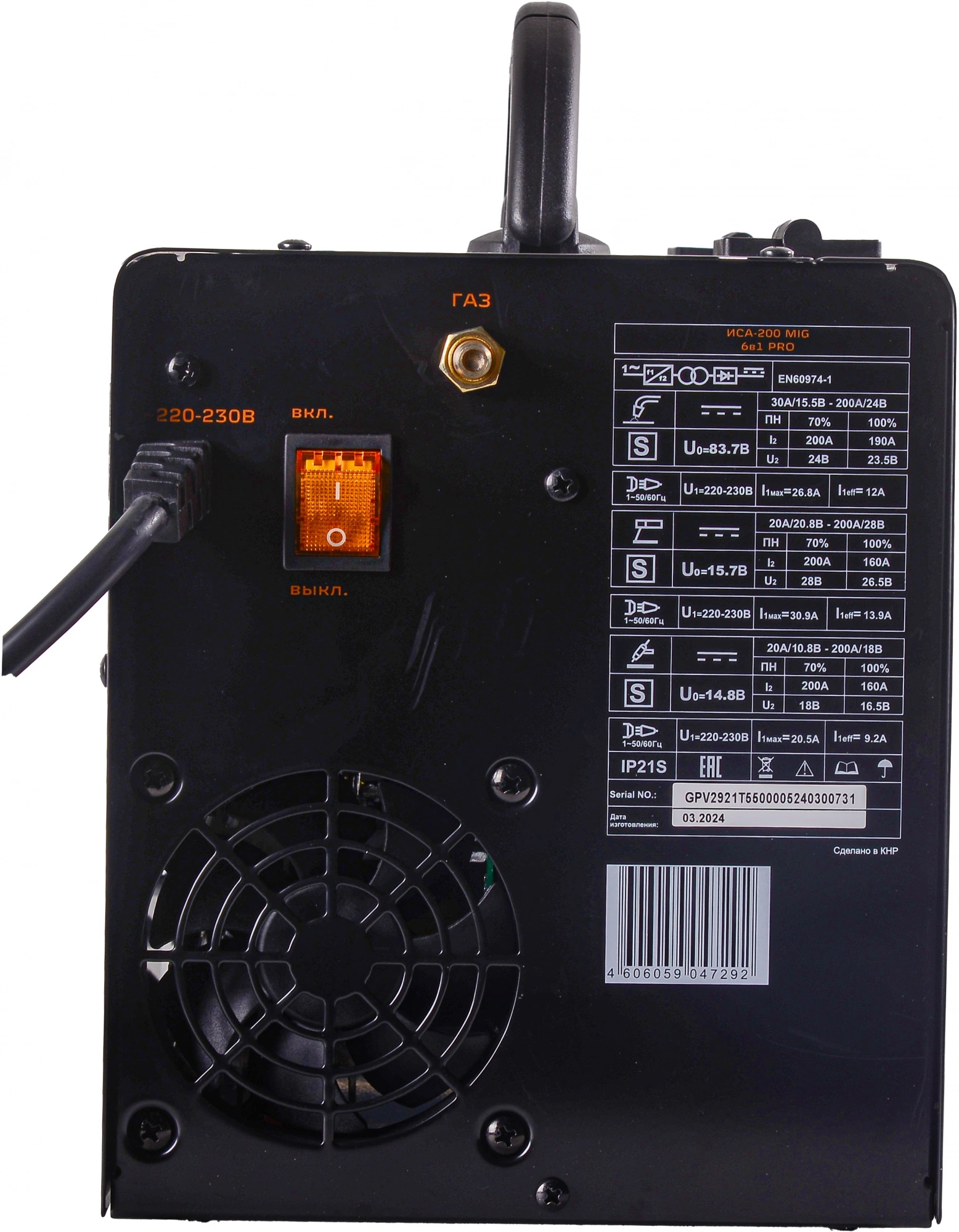 Сварочный полуавтомат Вихрь ИСА-200 MIG 6в1 PRO инвертор, MIG 6 в 1, 155 - 280В, 20 – 200 А, ПВ - 70%