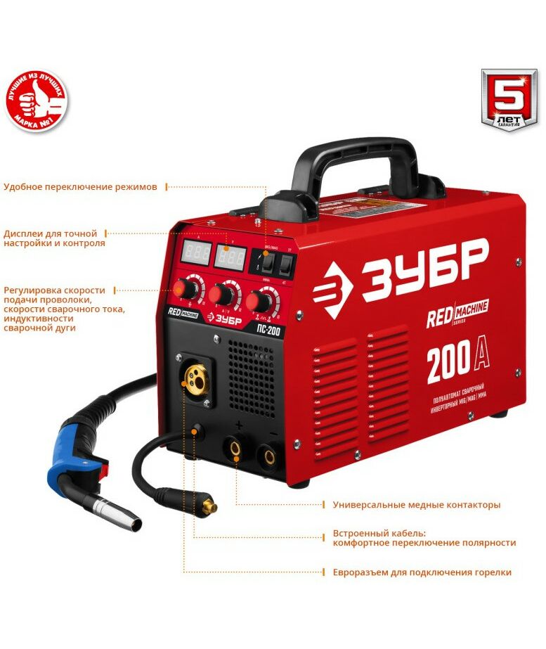 Полуавтомат сварочный инверторный Зубр ПС-200 200 А