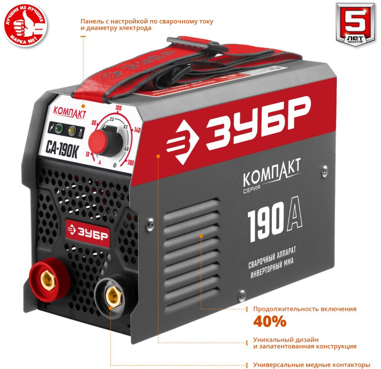 - Компактный сварочный инвертор предназначен для ручной электродуговой сварки с применением плавких электродов (ММА). Электронные компоненты и микропроцессорное управление сварочным током обеспечивают малый вес и габариты, стабильность характеристик и оперативное подстраивание к любым условиям процесса сварки. ЗУБР - передовые технологии у Вас на службе