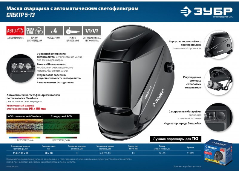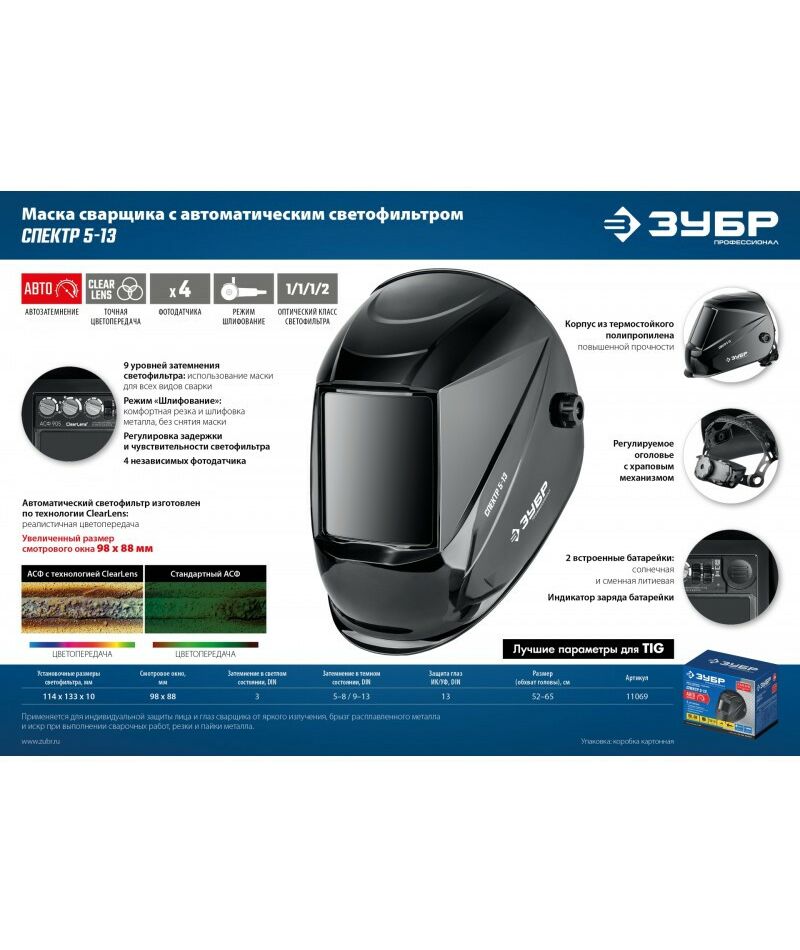 Маска сварщика Зубр Спектр 5-13 Хамелеон затемнение 3/5-8/9-13 [11069]