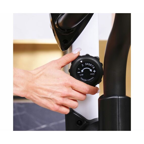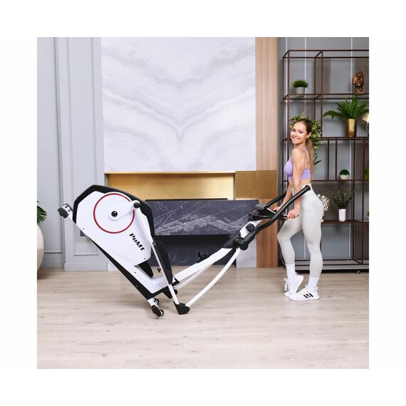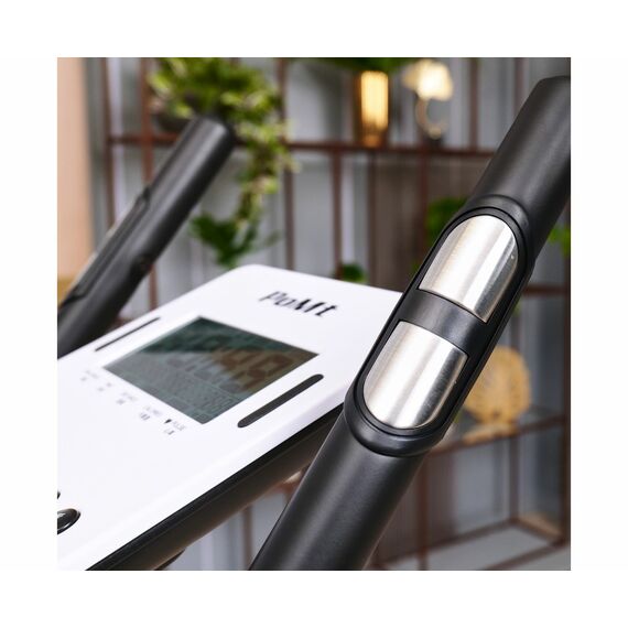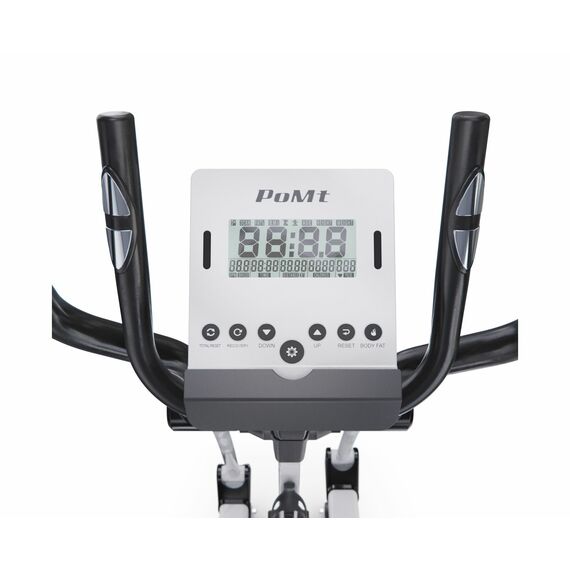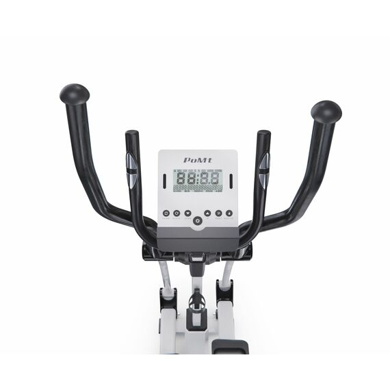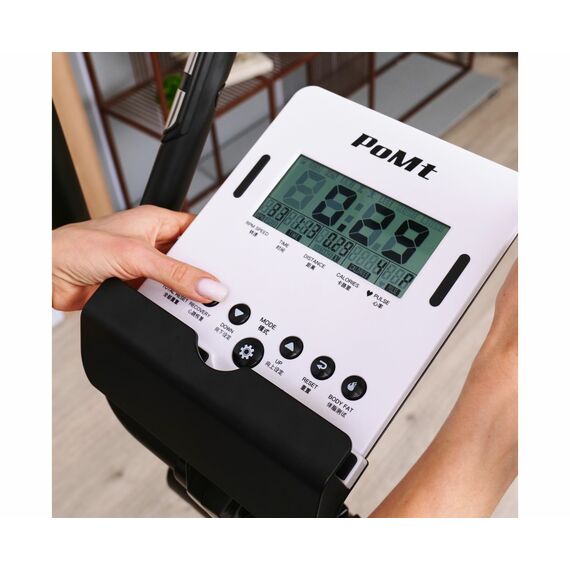 Тренажёр оснащён монохромным LCD-дисплеем, который отображает время, скорость, дистанцию, калории, пульс, восстановление, обороты в минуту, а также предоставляет доступ к 12 программам и пользовательской программе с возможностью настройки. Измерение пульса осуществляется с помощью встроенных сенсорных датчиков на поручнях. Тренажёр также подключается к приложению i-console через Bluetooth, что делает ваши тренировки эффективнее и разнообразнее.