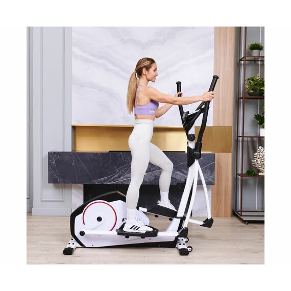 Максимальный вес пользователя эллиптического тренажера составляет 120 кг. Эллипс имеет магнитную систему нагрузки с механической регулировкой. Инерционный маховик весом 13 кг обеспечивает плавный и бесшумный ход.