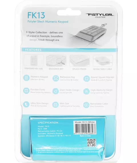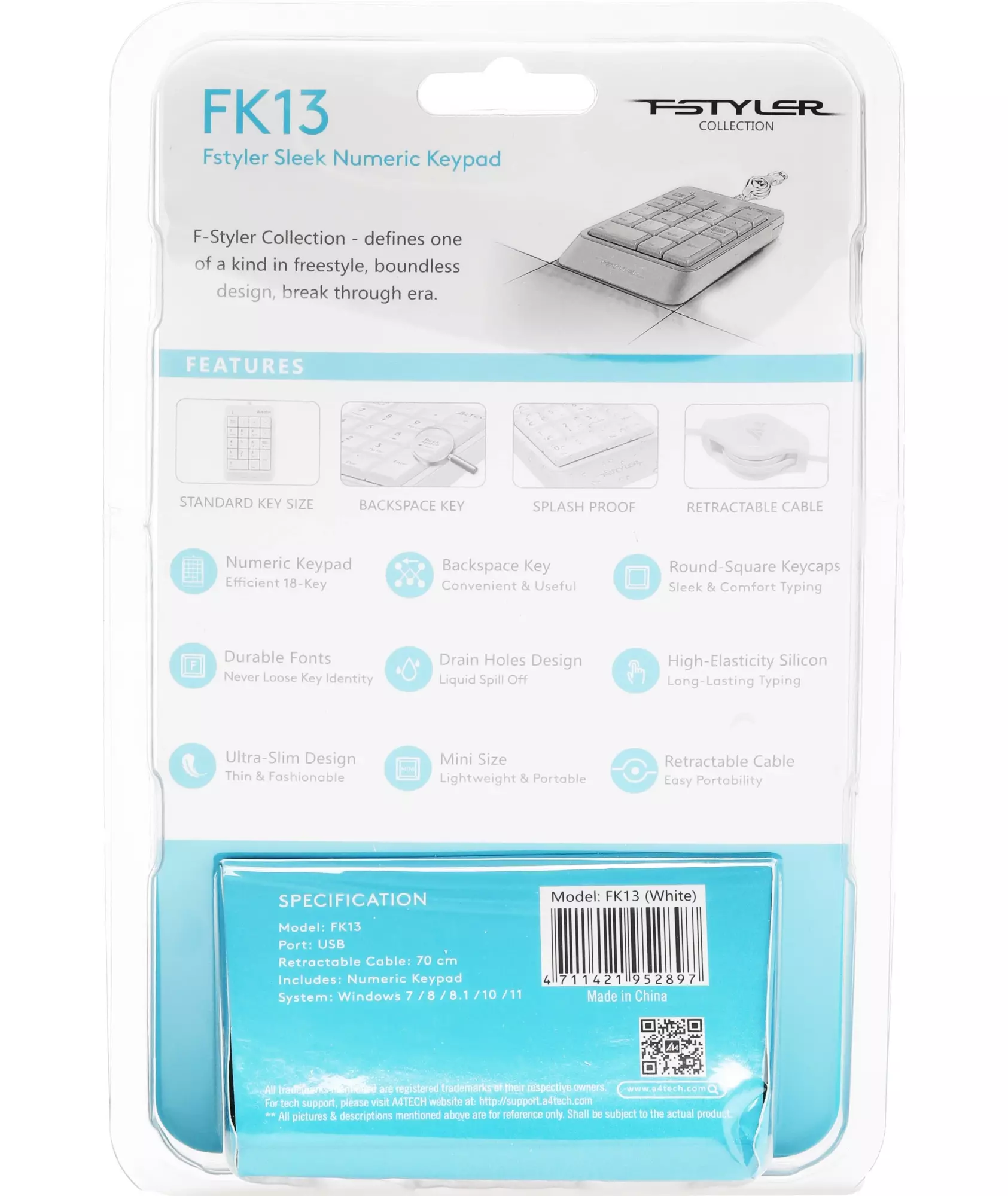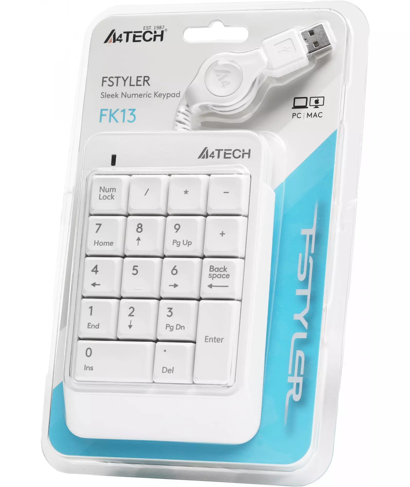 Числовой блок A4-Tech Fstyler FK13 WHITE белый USB slim для ноутбука