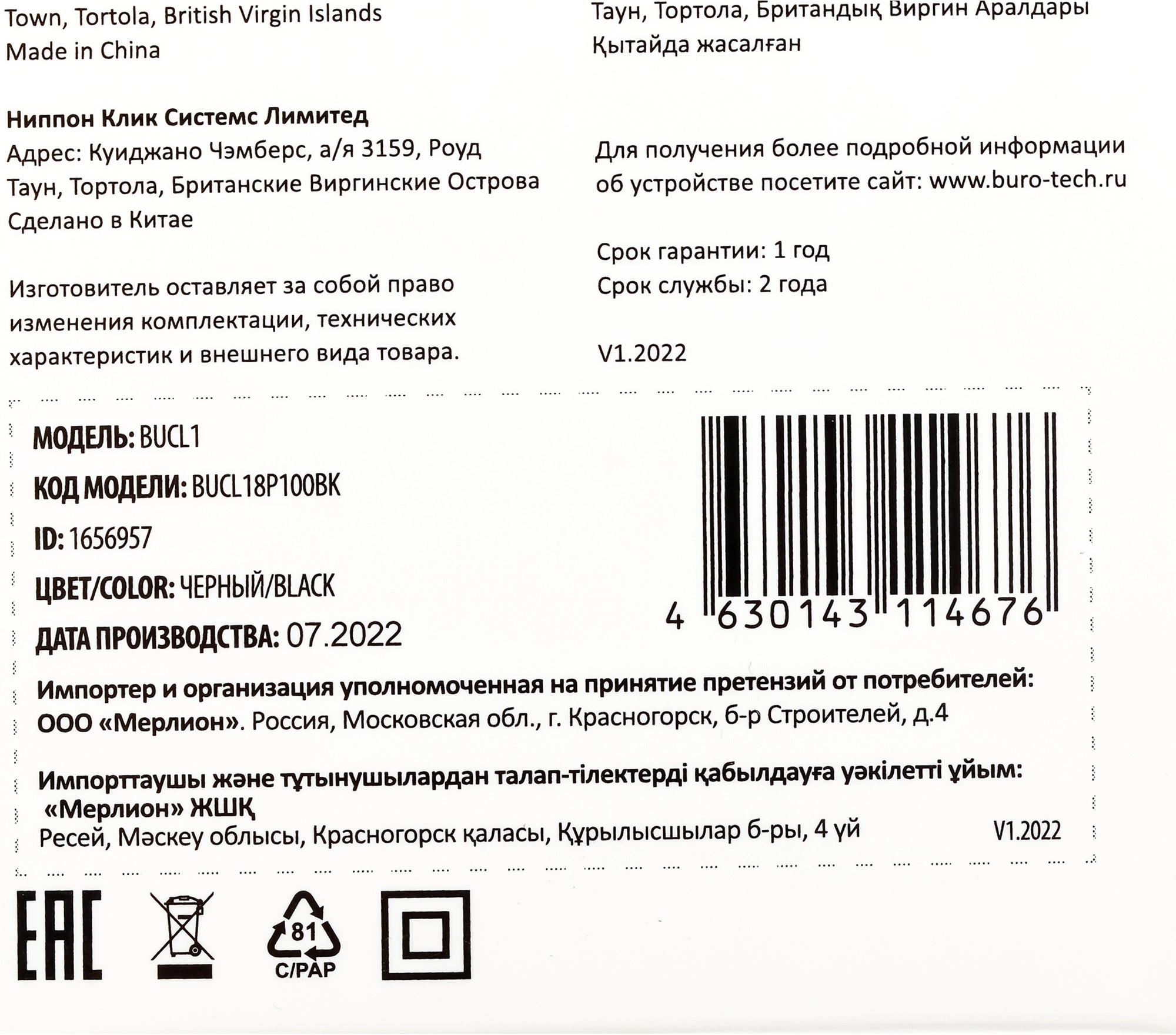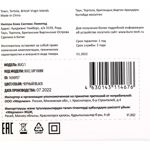 Наличие товара BURO BUCL1 [BUCL18P100BK]