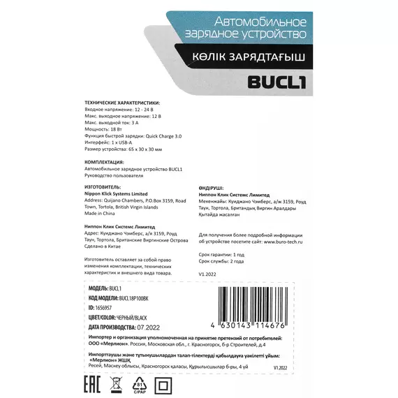 | Срок гарантии | 12 мес. |