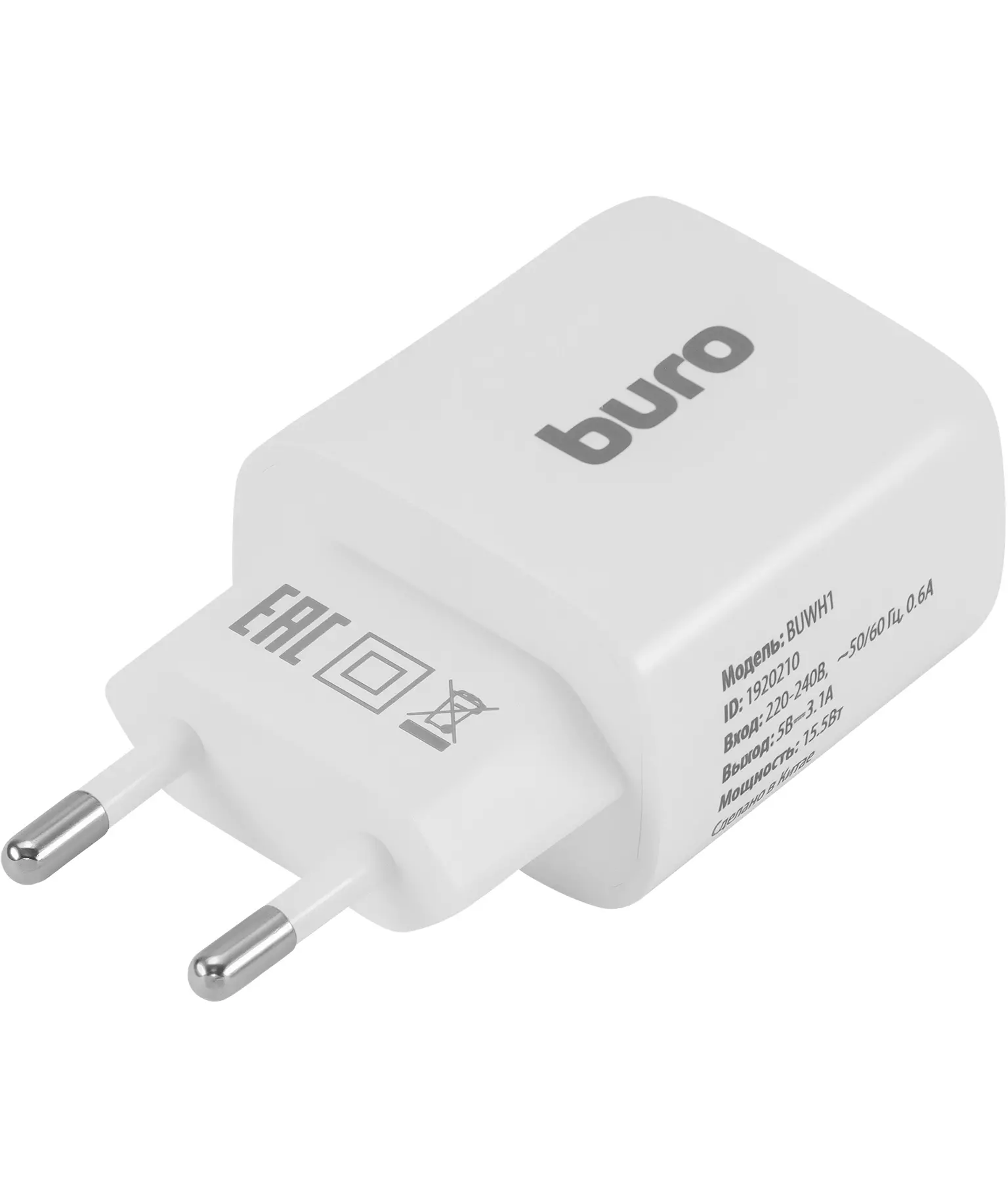 Сетевое зар./устр. BURO BUWH1 15.5W 3.1A 2xUSB универсальное белый [BUWH15S200WH]