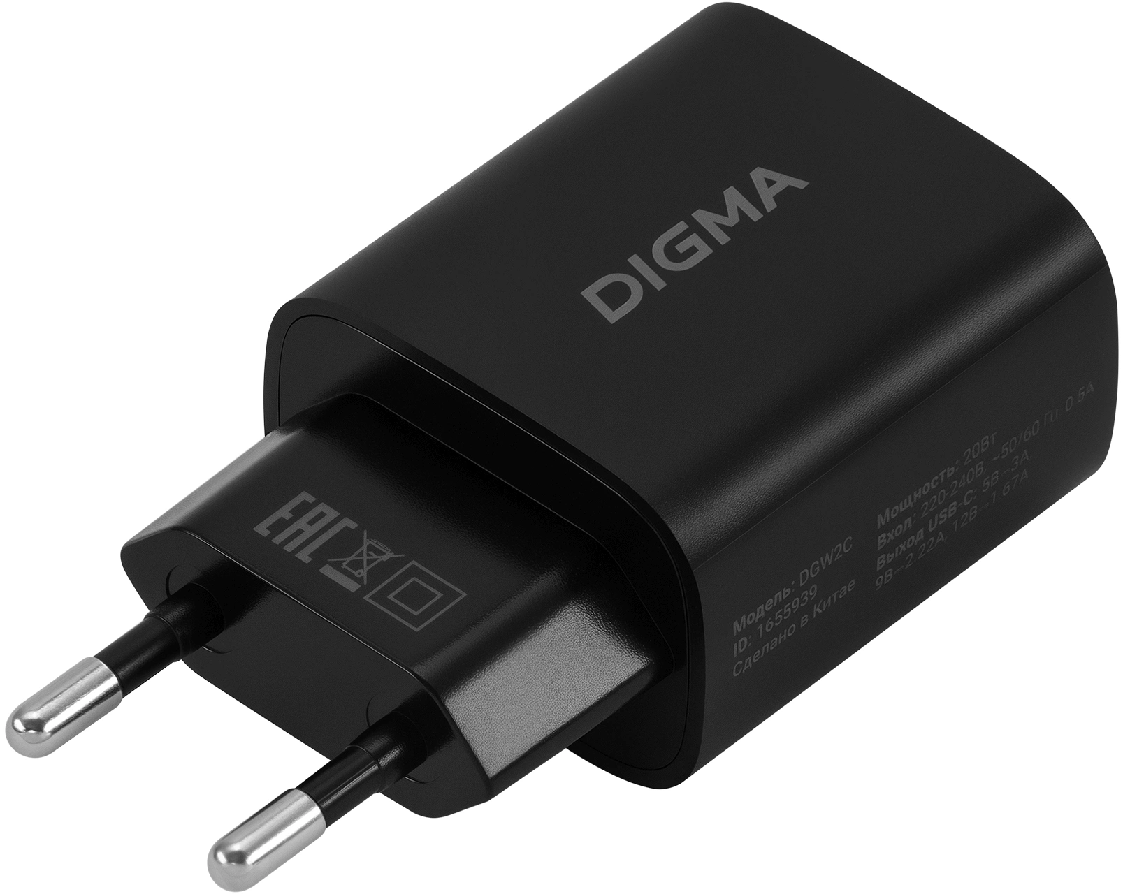 Сетевое зар./устр. Digma DGW2C 20W 3A (PD) USB-C универсальное черный [DGW2C0F010BK]