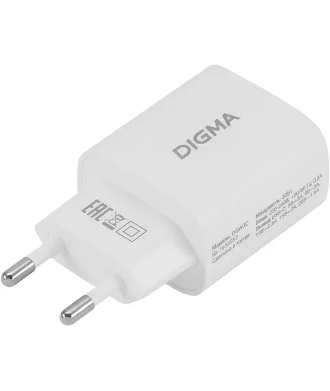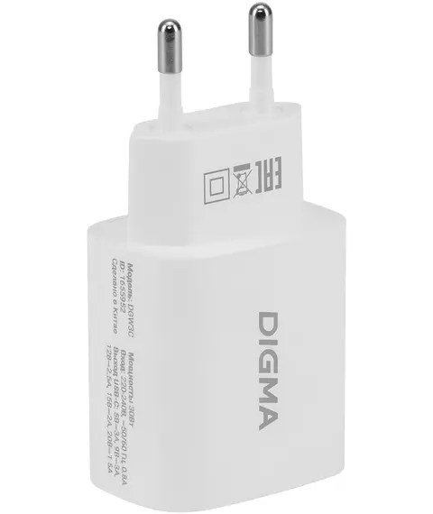 Сетевое зар./устр. Digma DGW3C 30W 3A (PD) USB-C универсальное белый [DGW3C0F010WH]