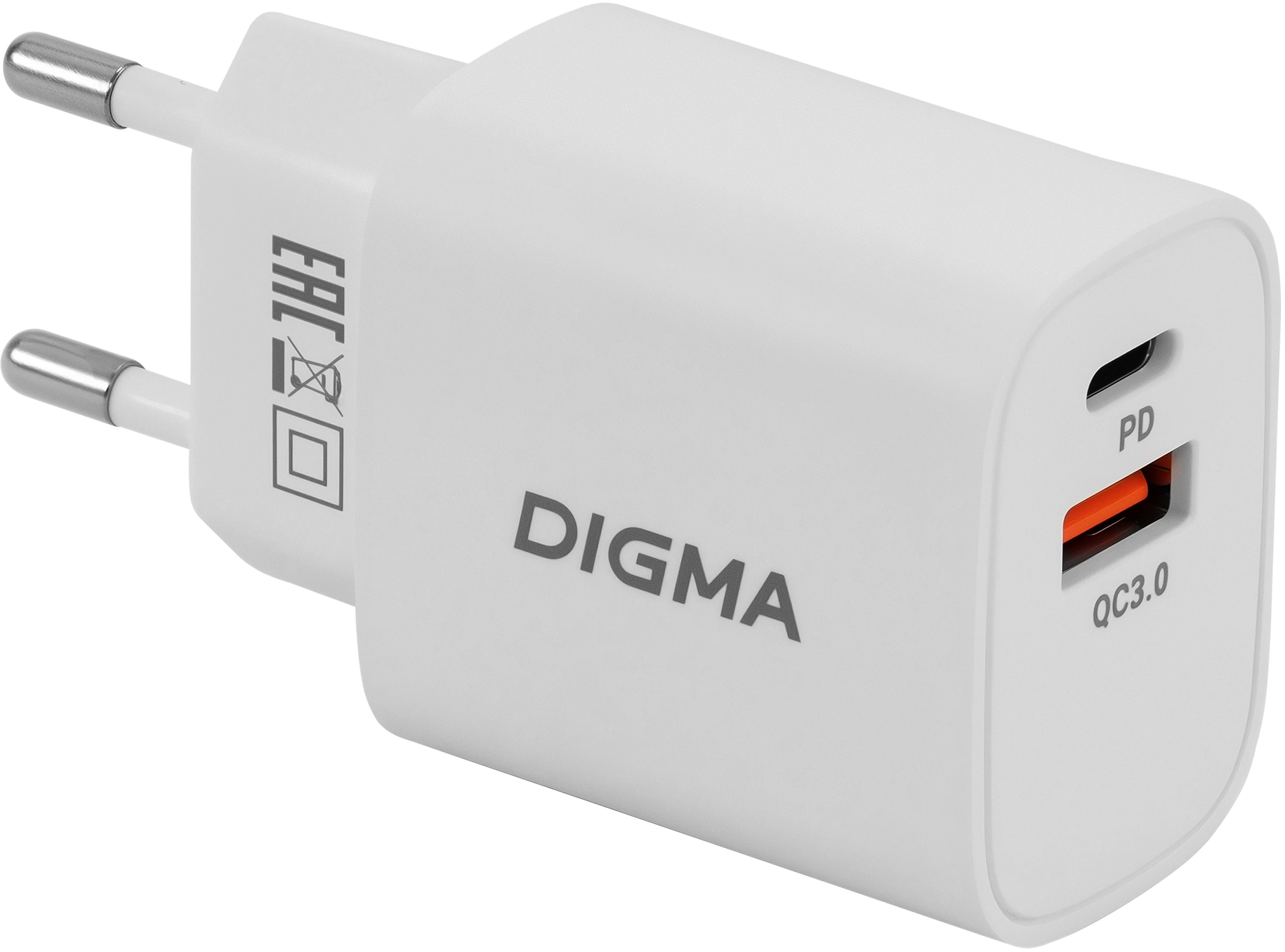 Сетевое зар./устр. Digma DGW3D 30W 3A (PD+QC) USB-C/USB-A универсальное белый [DGW3D0F110WH]
