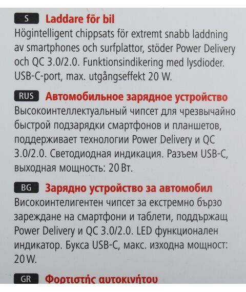 Зарядное устройство для практичной зарядки в легковых / грузовых автомобилях. Поддерживает технологию Power Delivery и Qualcomm® Quick Charge 2.0 / 3.0, что гарантирует чрезвычайно быструю зарядку, быстрее, чем при использовании традиционных технологий зарядки.