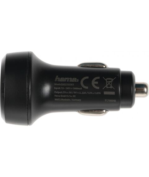 Автомобильное зар./устр. Hama H-210569 1.67A+3A+2.22A (PD) USB универсальное черный [00210569]
