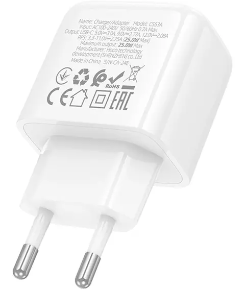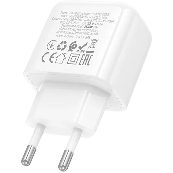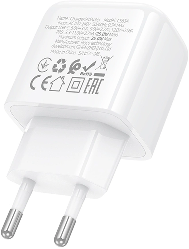 Сетевое зар./устр. Hoco CS53A Surplus 25W 3A (PD) USB Type-C универсальное белый [31488]
