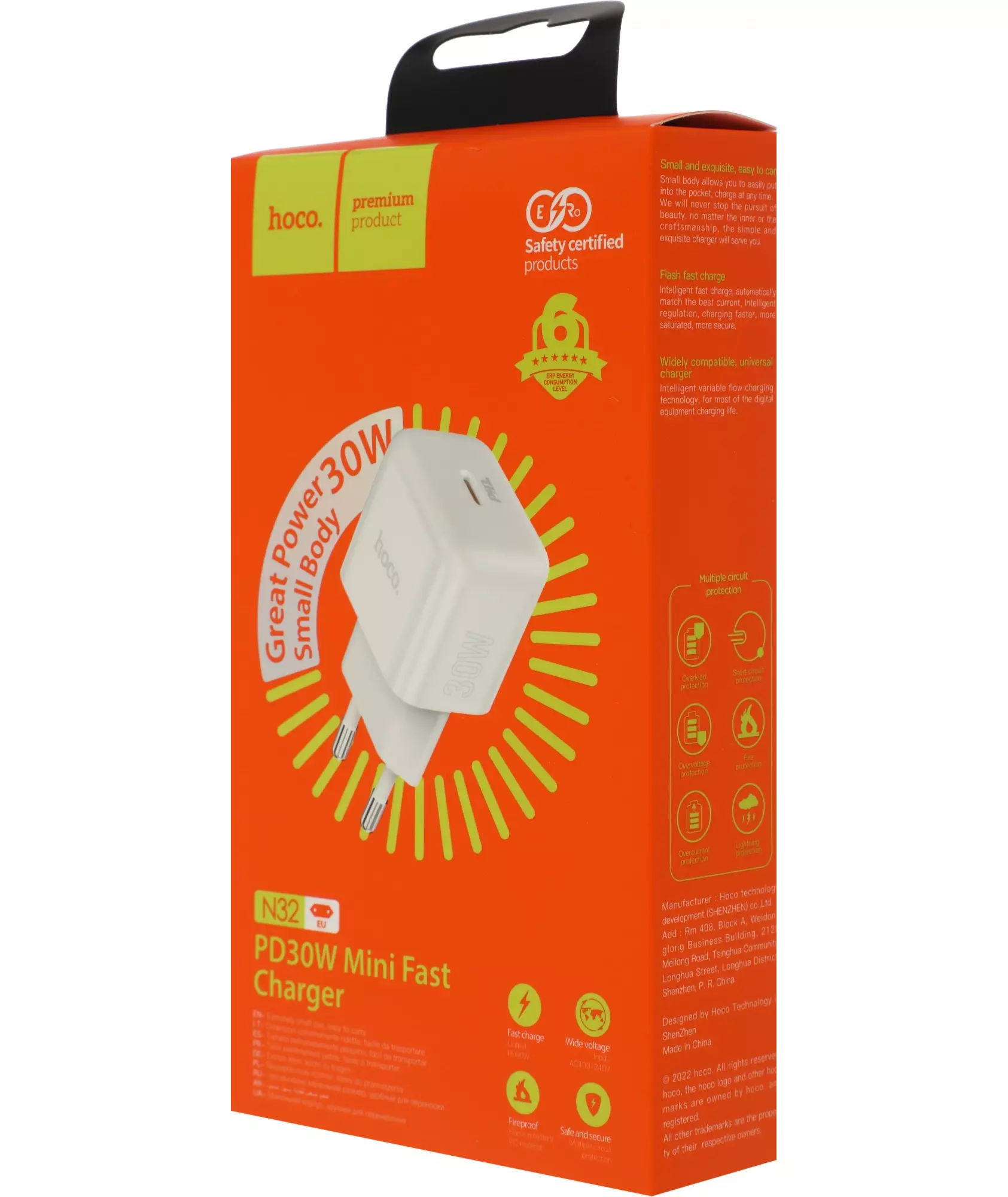 Сетевое зар./устр. Hoco N32 Glory White 30W 3A+2A+1.5A (PD+QC+AFC) USB Type-C универсальное белый