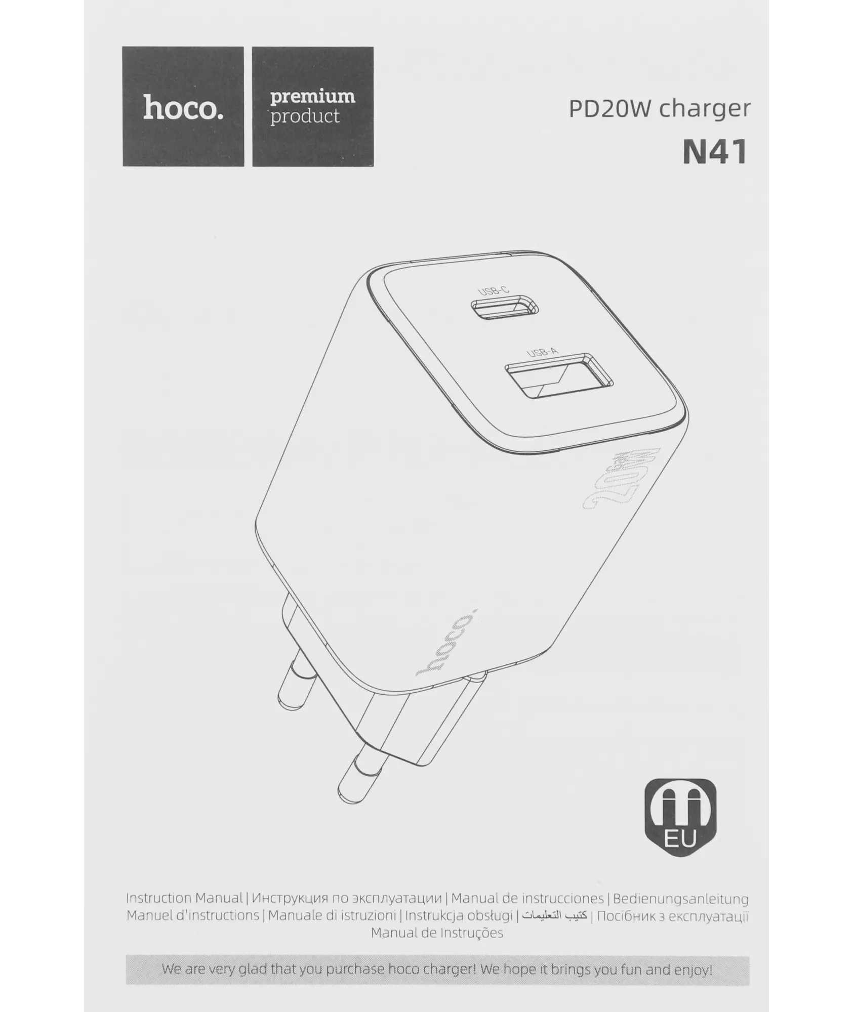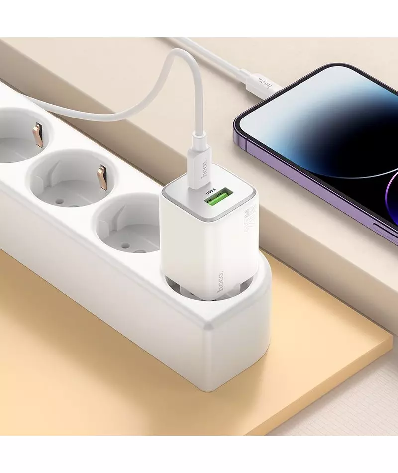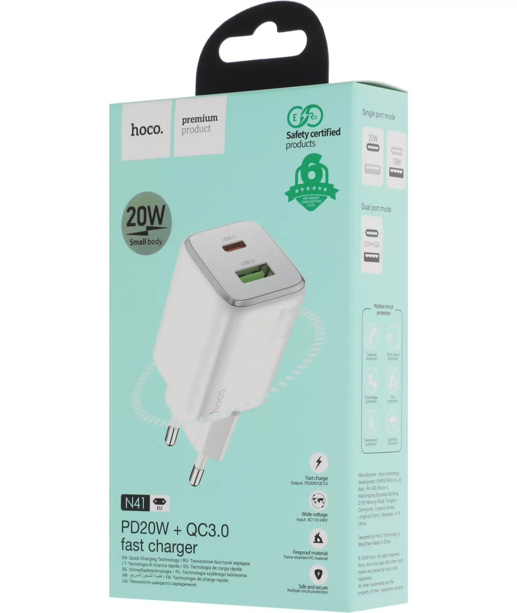 Сетевое зар./устр. Hoco N41 ALMIGHTY WHITE 20W 3A (PD+QC+AFC) USB-A/Type-C универсальное белый