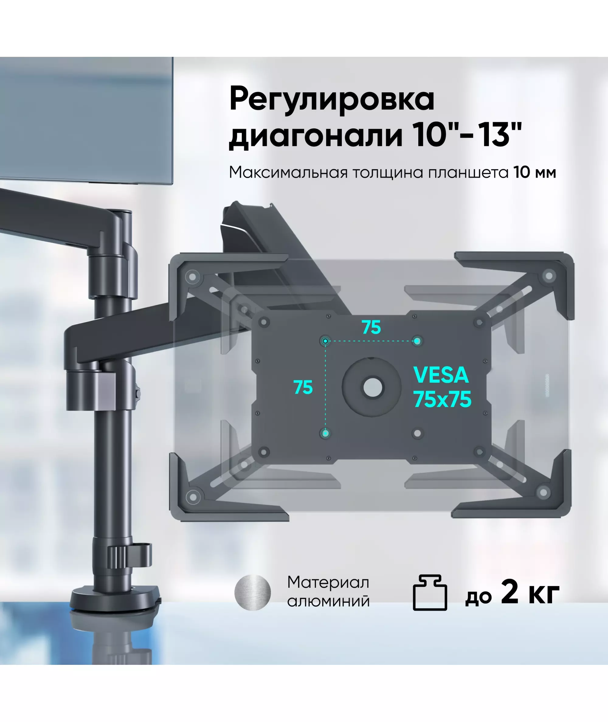 | Вес удерживаемого устройства, max | 2000 грамм |