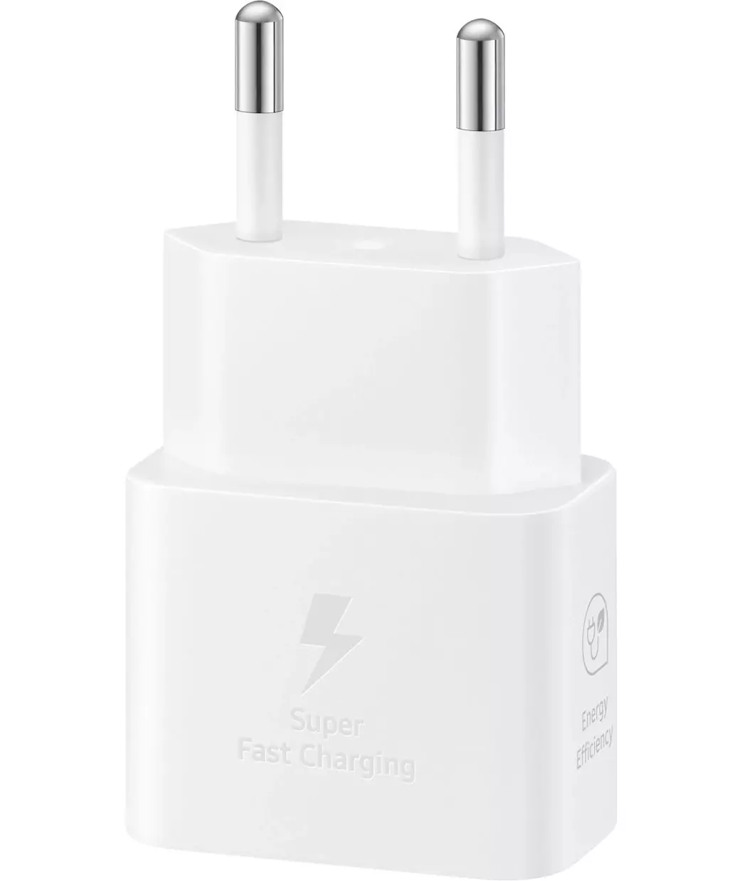 Сетевое зарядное устройство мощностью 25 Вт с выходом USB Type-C и дата-кабель USB Type-C - Type-C (3 А, 1 метр). Поддержка стандарта сверхбыстрой зарядки Power Delivery 3.0 PPS (максимальная мощность зарядки до 25 Вт), Нулевое энергопотребление в режиме ожидания (< 5мВт), Высокая мощность в компакт