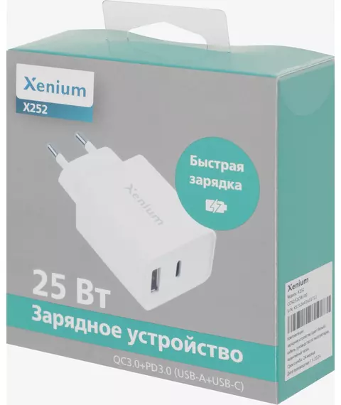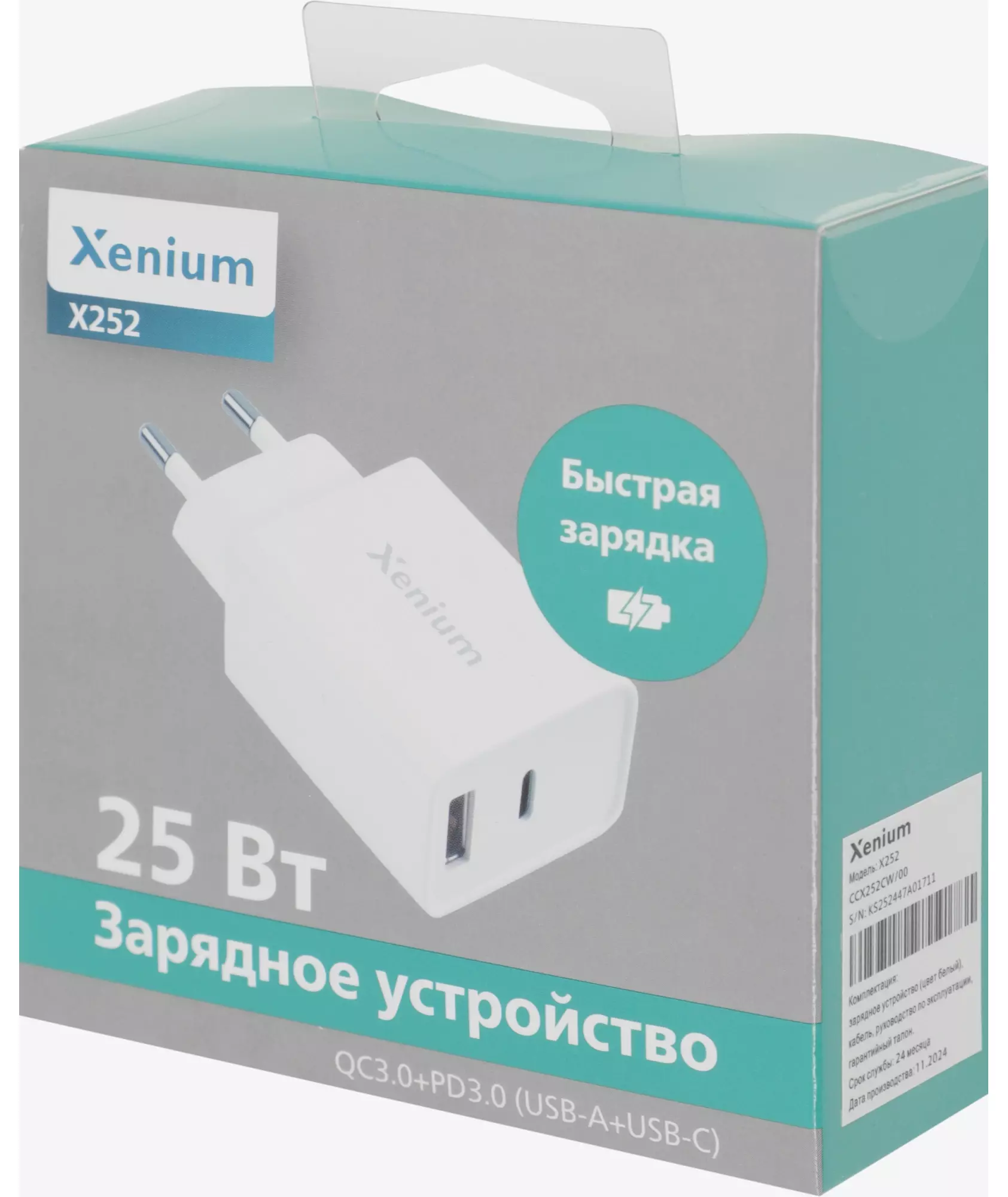 Сетевое зар./устр. Xenium X252 25W 3A+2A USB/USB Type-C универсальное белый [CCX252CW/00]