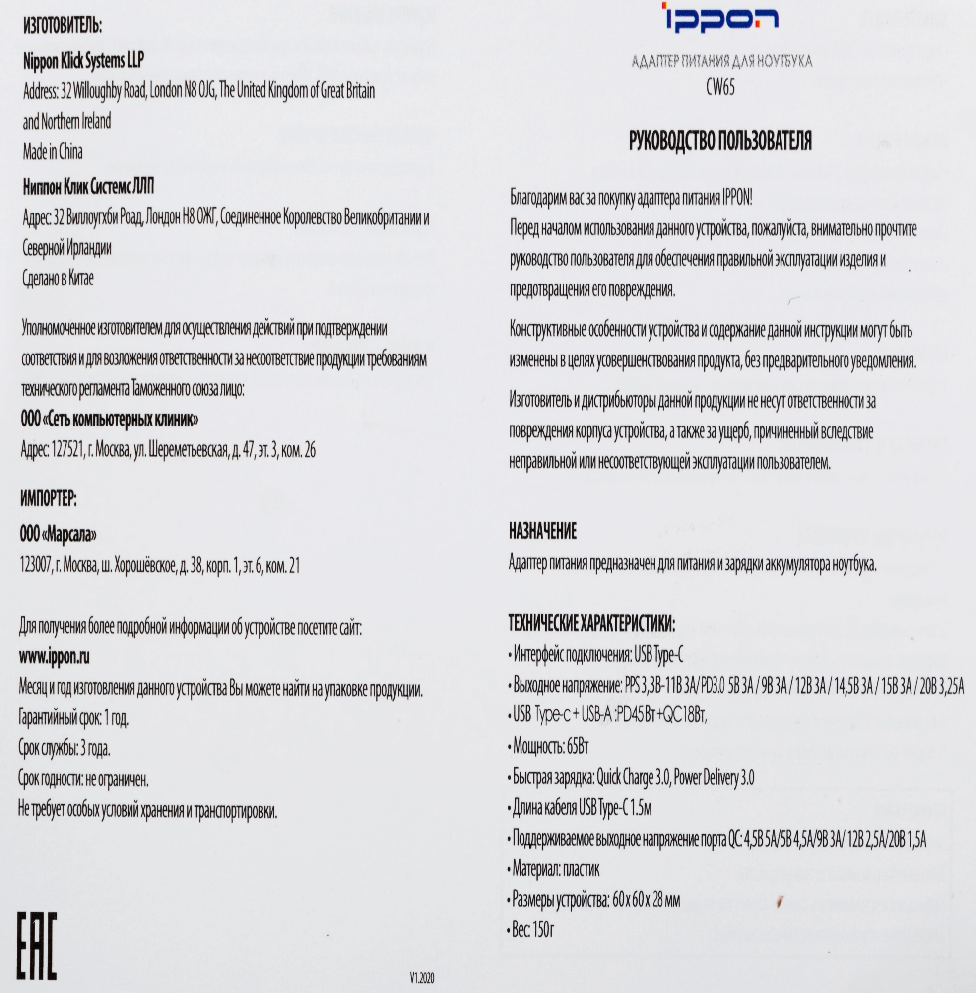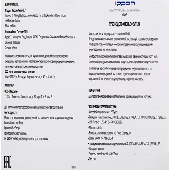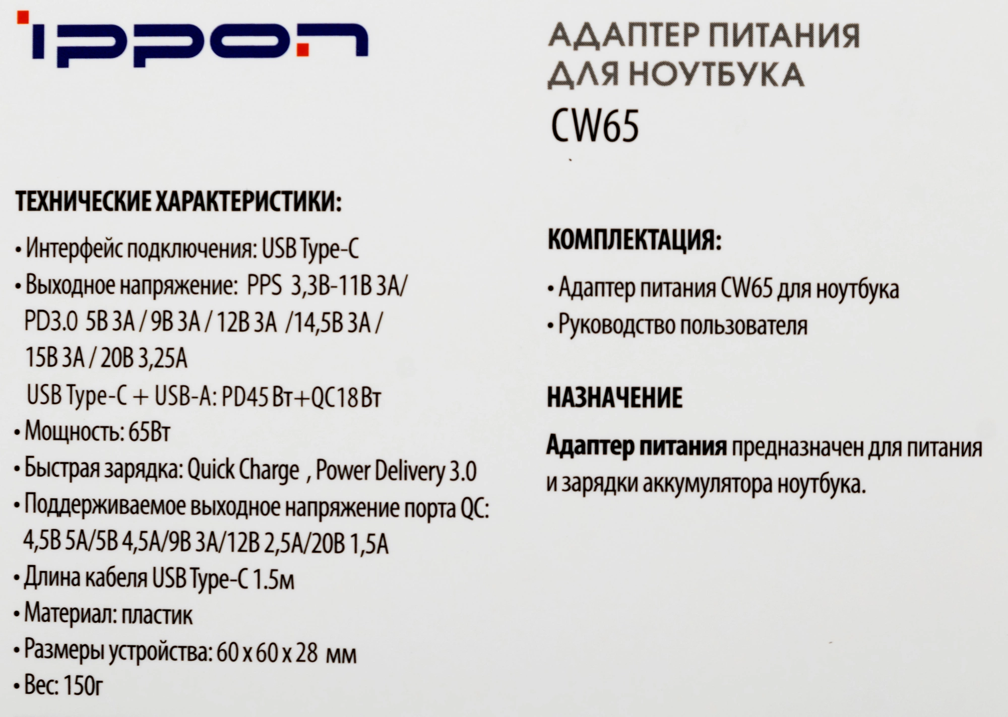 Описание Ippon CW65