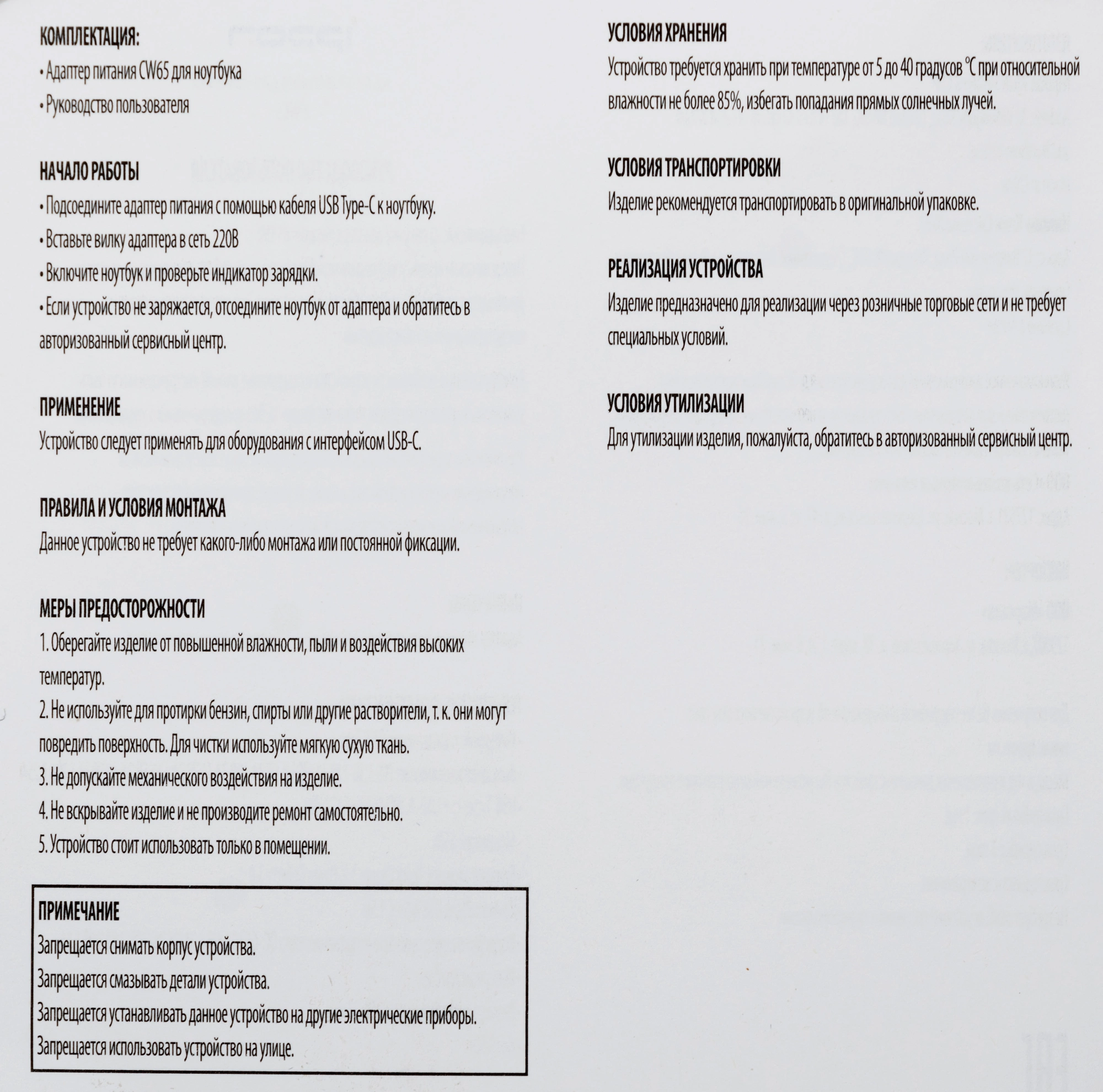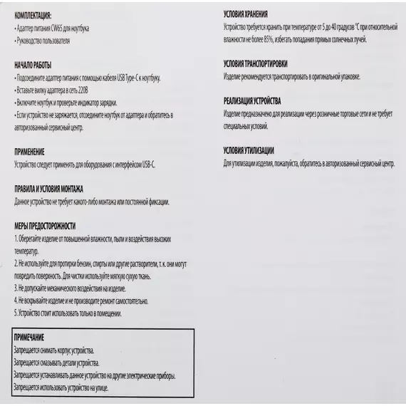 | Комплектация | Адаптер питания, руководство пользователя |