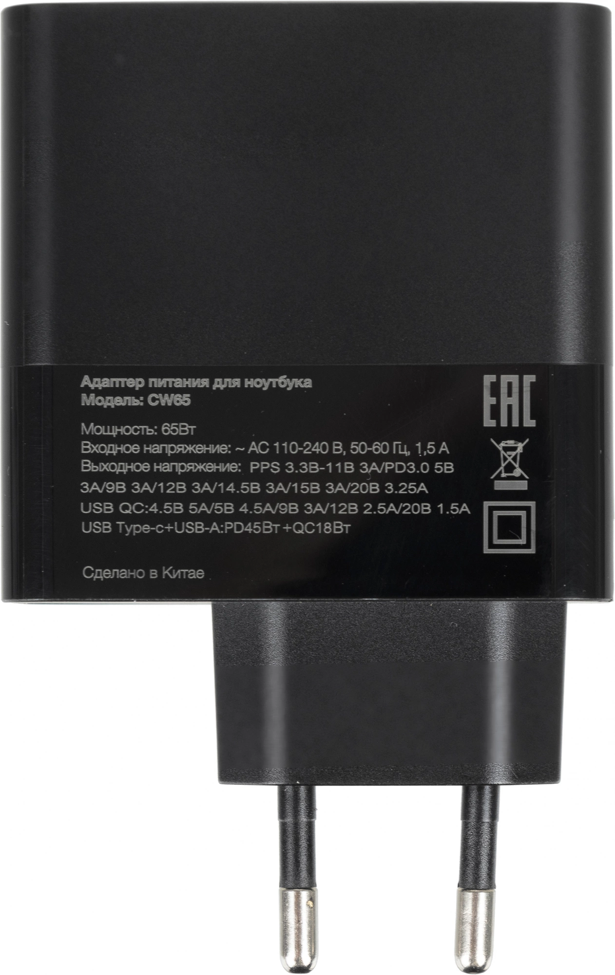 Адаптер питания универсальный с разъемом USB Type-C и поддержкой PD 3.0 и QC.
