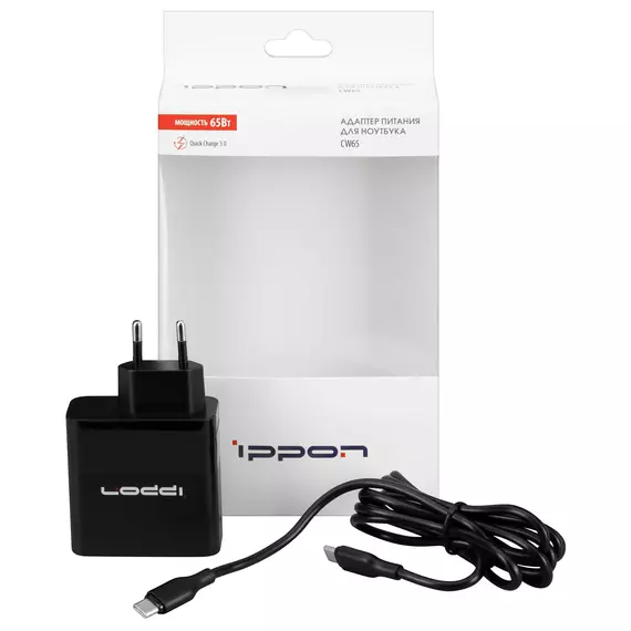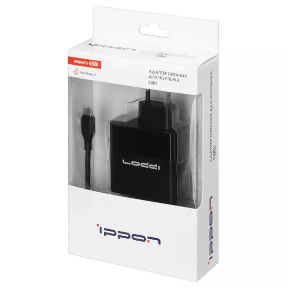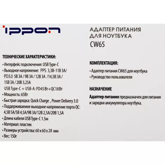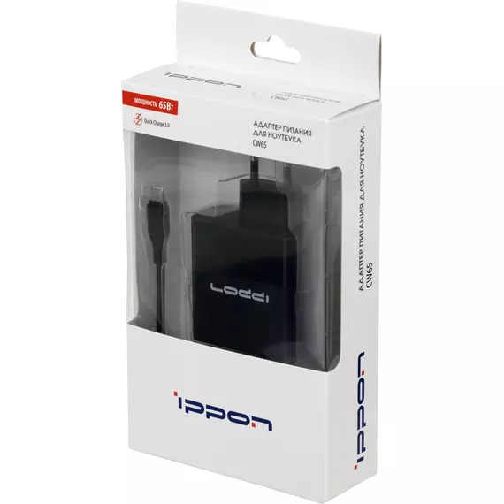 Блок питания Ippon CW65 автоматический 65W 5V-20V 3.25A 1xUSB 5A от бытовой электросети