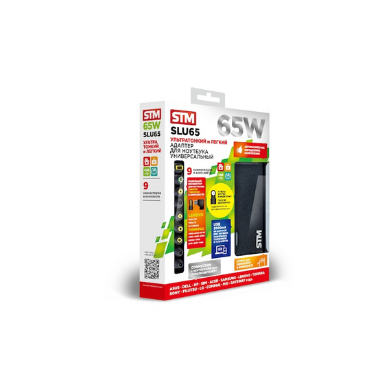Автомобильный универсальный адаптер для ноутбуков STM SLU65 на 65Ватт, Car adapter