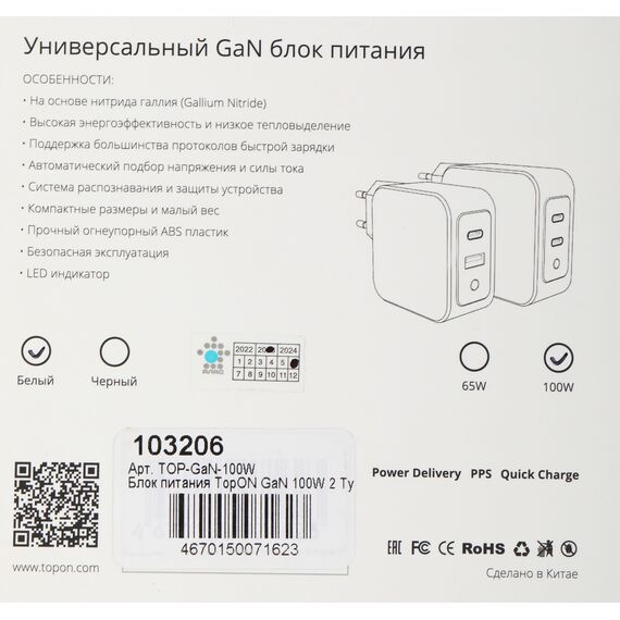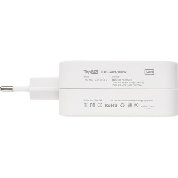 Блок питания TopON TOP-GaN-100W автоматический 100W 5V-20V 5A 2xUSB от бытовой электросети LED индикатор [103206]