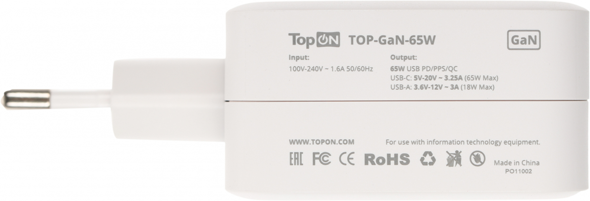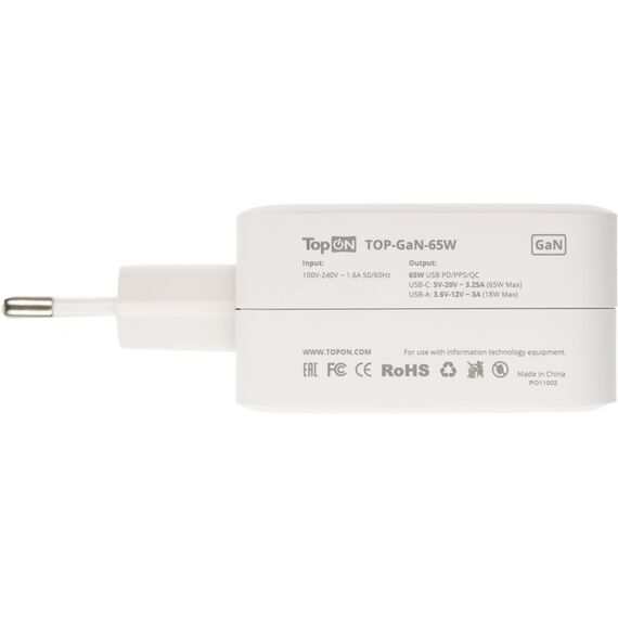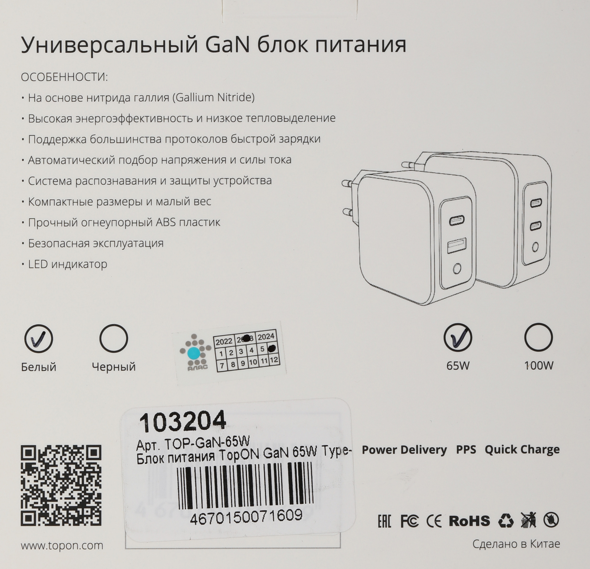 Блок питания автоматический TopON TOP-GaN-65W 65W 5V-20V 3.25A 2xUSB LED индикатор [103204]