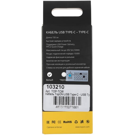 Длина 150 см Быстрая зарядка устройств Поддержка USB Power Delivery, PPS и Quick Charge Максимальный ток до 20V 5А (100W) Ресурс подключений порядка 10 000 Надежная фиксация в разъеме
