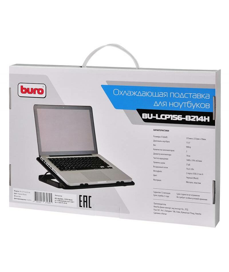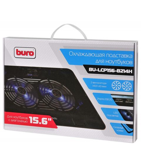 Подставка для ноутбука BURO BU-LCP156-B214H 15.6" 355x255x30мм 2xUSB 2x 140ммFAN 900г металлическая сетка/пластик черный