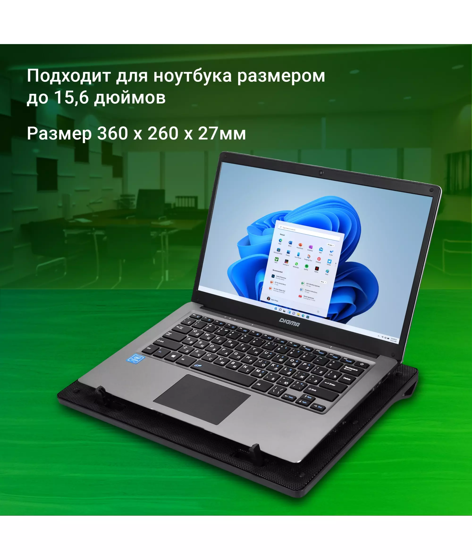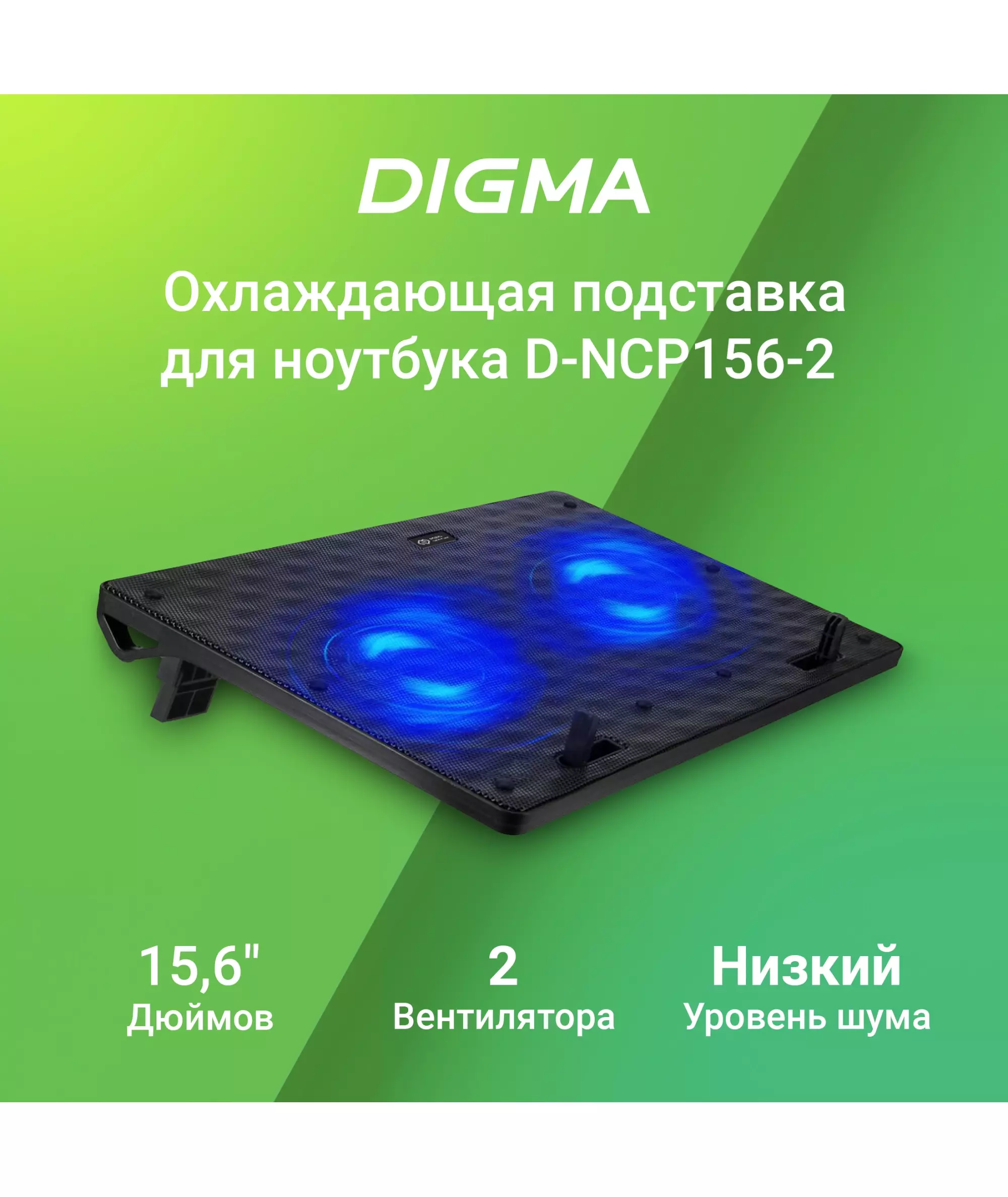 Подставка для ноутбука Digma D-NCP156-2 15.6" 360x260x27мм 2xUSB 2x 120мм FAN 650г черный