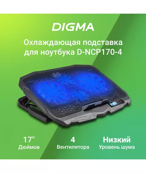 Подставка для ноутбука Digma D-NCP170-4 17"390x280x28мм 2xUSB 4x 70/125ммFAN 750г черный