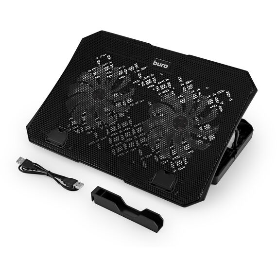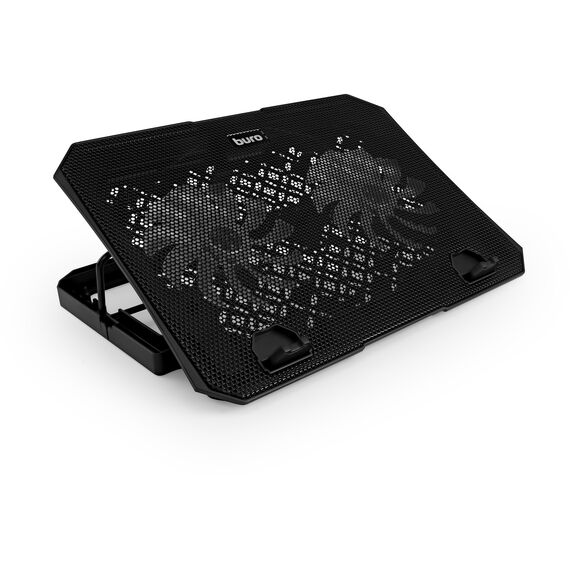 Подставка для ноутбука BURO BU-LCP150-B213 15" 335x265x22мм 74.35дБ 1xUSB 2x 140ммFAN 480г металлическая сетка/пластик черный