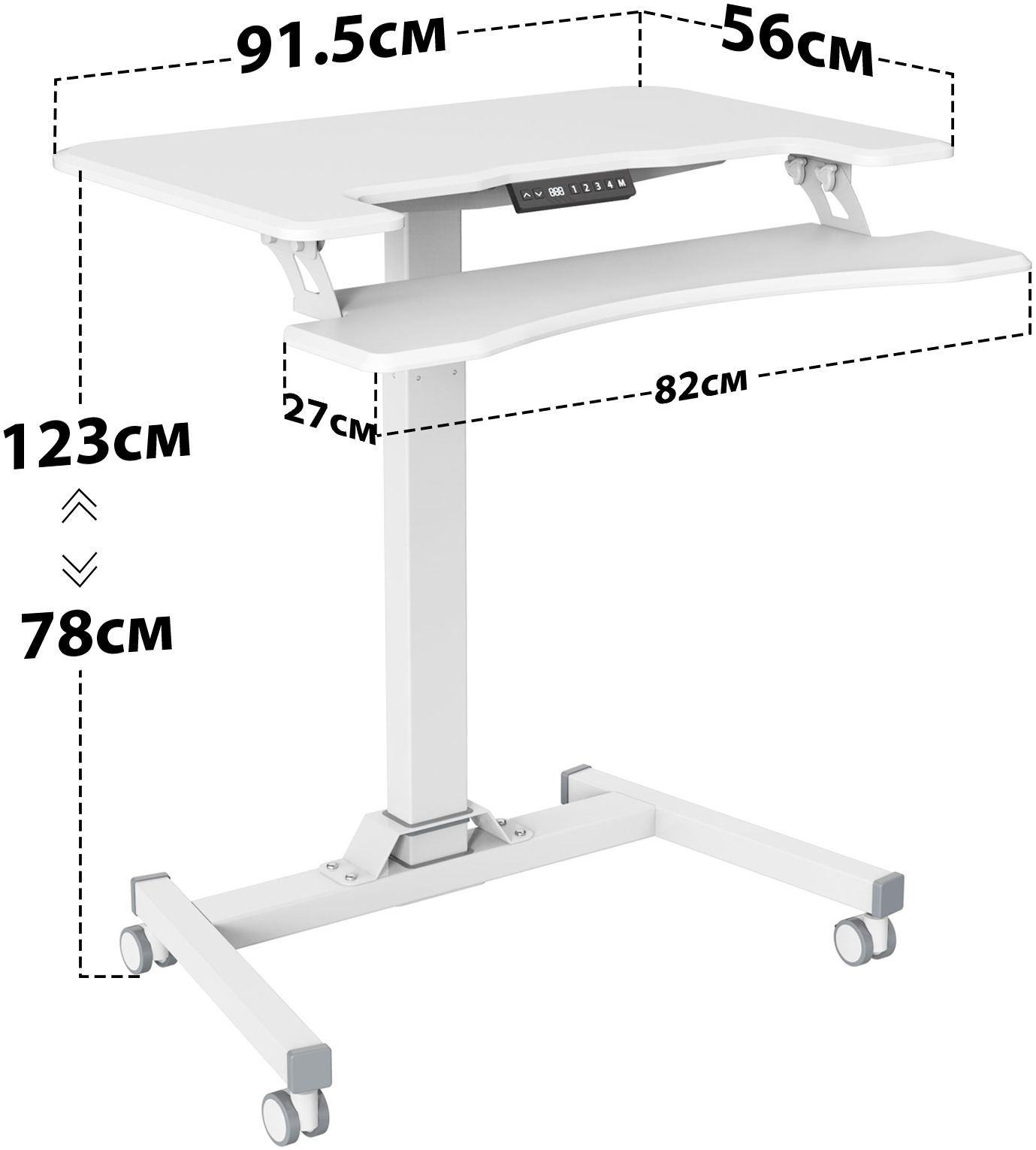 | Особенности | Стол с электроприводом. Хранение 4 запрограммированных значений, датчик от столкновений, термозащита, наличие 4 колес обеспечивает маневренность, 2 колеса со стопором, для придания устойчивости. |