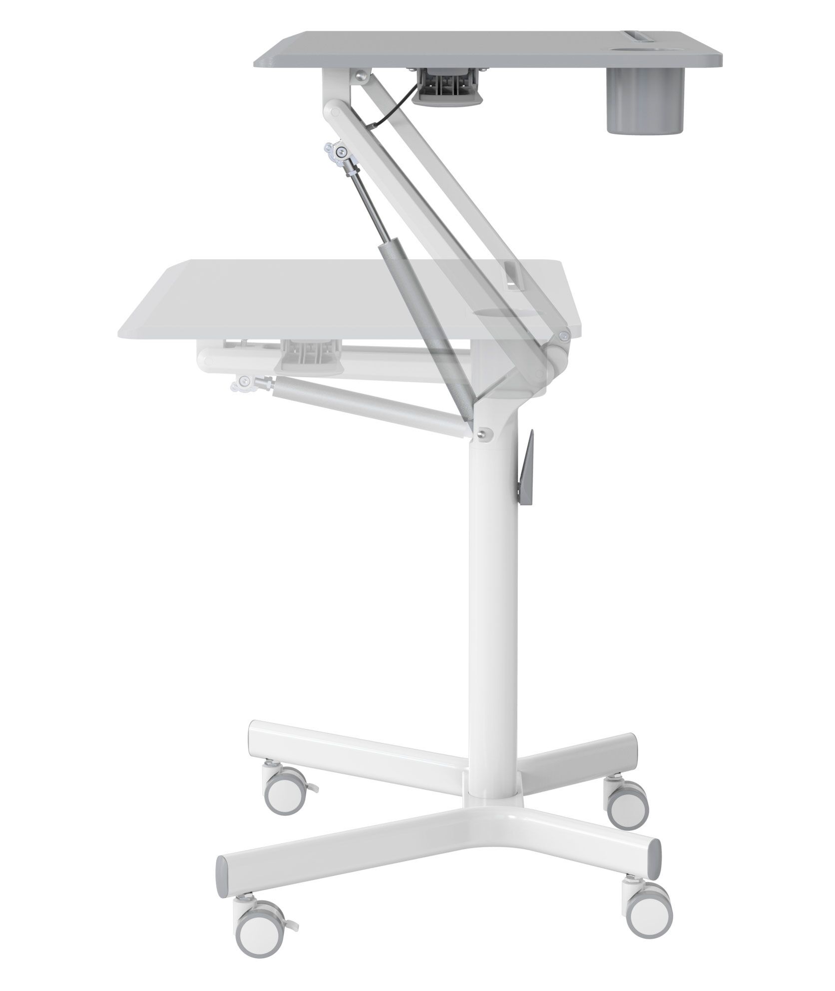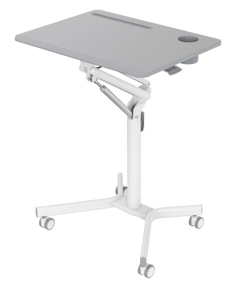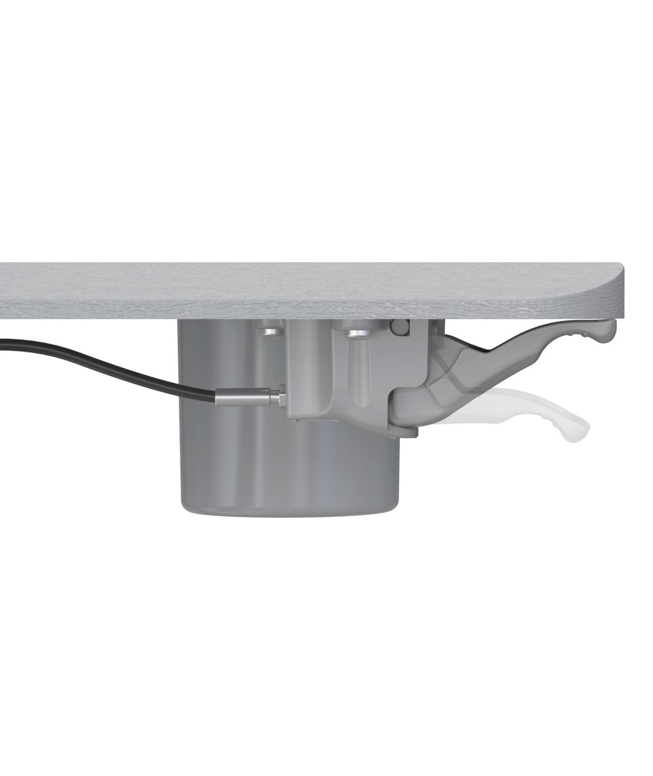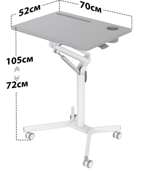 | Особенности | Подъемный механизм плавно опускает и поднимает столешницу, можно остановить в любом положении. Управление при помощи одного рычага. Наличие 4 колес обеспечивает маневренность, 2 колеса со стопором, для придания устойчивости. |