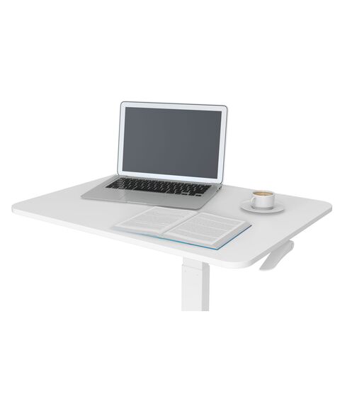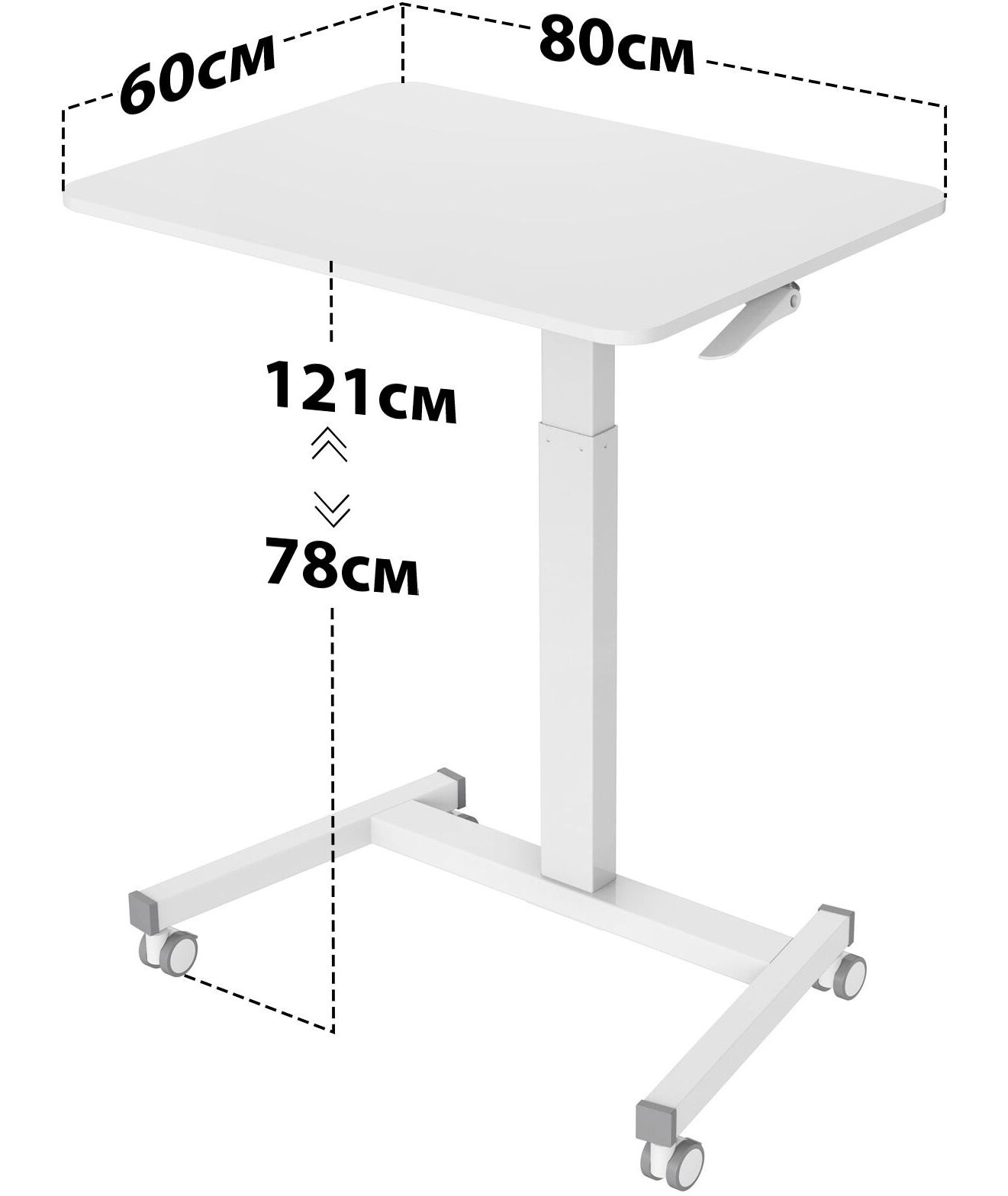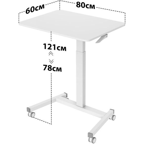 | Особенности | Простое управление: подъемный механизм плавно опускает и поднимает столешницу, можно остановить в любом положении. Управление при помощи одного рычага, комфортный и безопасный выбор удобного положения. Наличие 4 колес обеспечивает маневренность, 2 колеса со стопором, для придания устойчивости. |