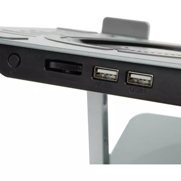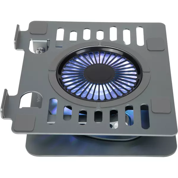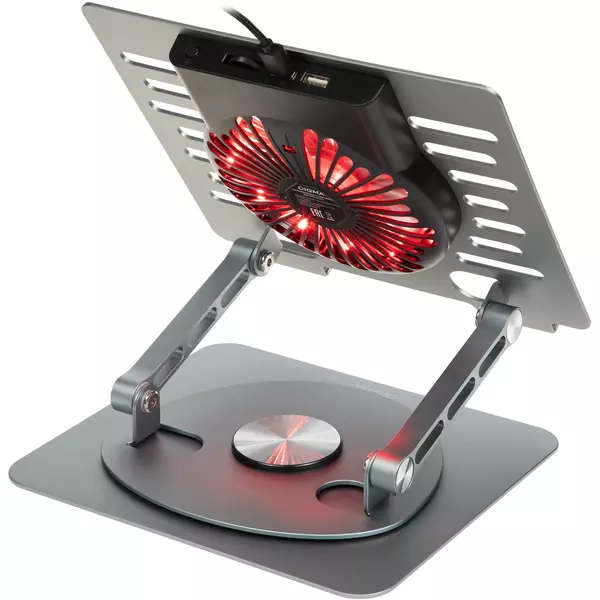 Металлическая подставка для ноутбука с прорезиненными вставками, которые препятствуют скатыванию ноутбука. Широкий диапазон настройки высоты и угла наклона позволяет легко подобрать оптимальное положение для работы. 10 режимов подсветки. Совместима с ноутбуками диагональю до 17".