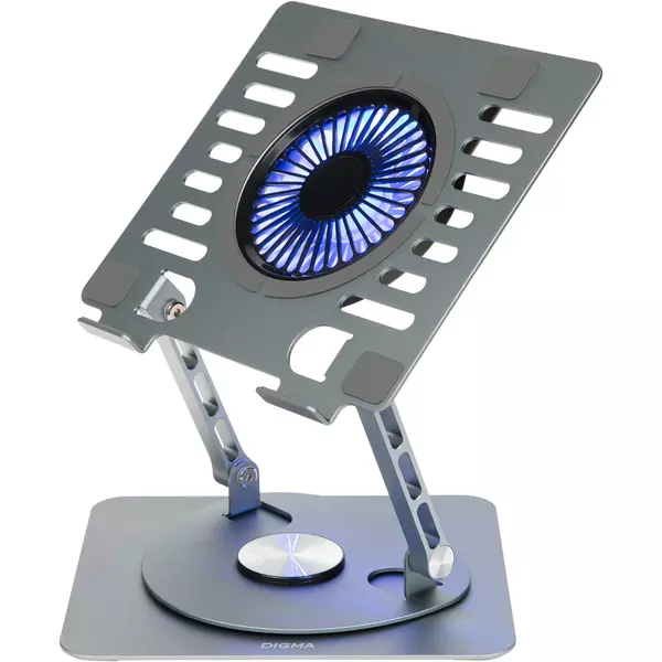 Подставка для ноутбука Digma D-NCP170-1xRGB110-360 17" 240x230x50мм 28дБ 2xUSB 1x 110ммFAN 940г Fan-control алюминий серый