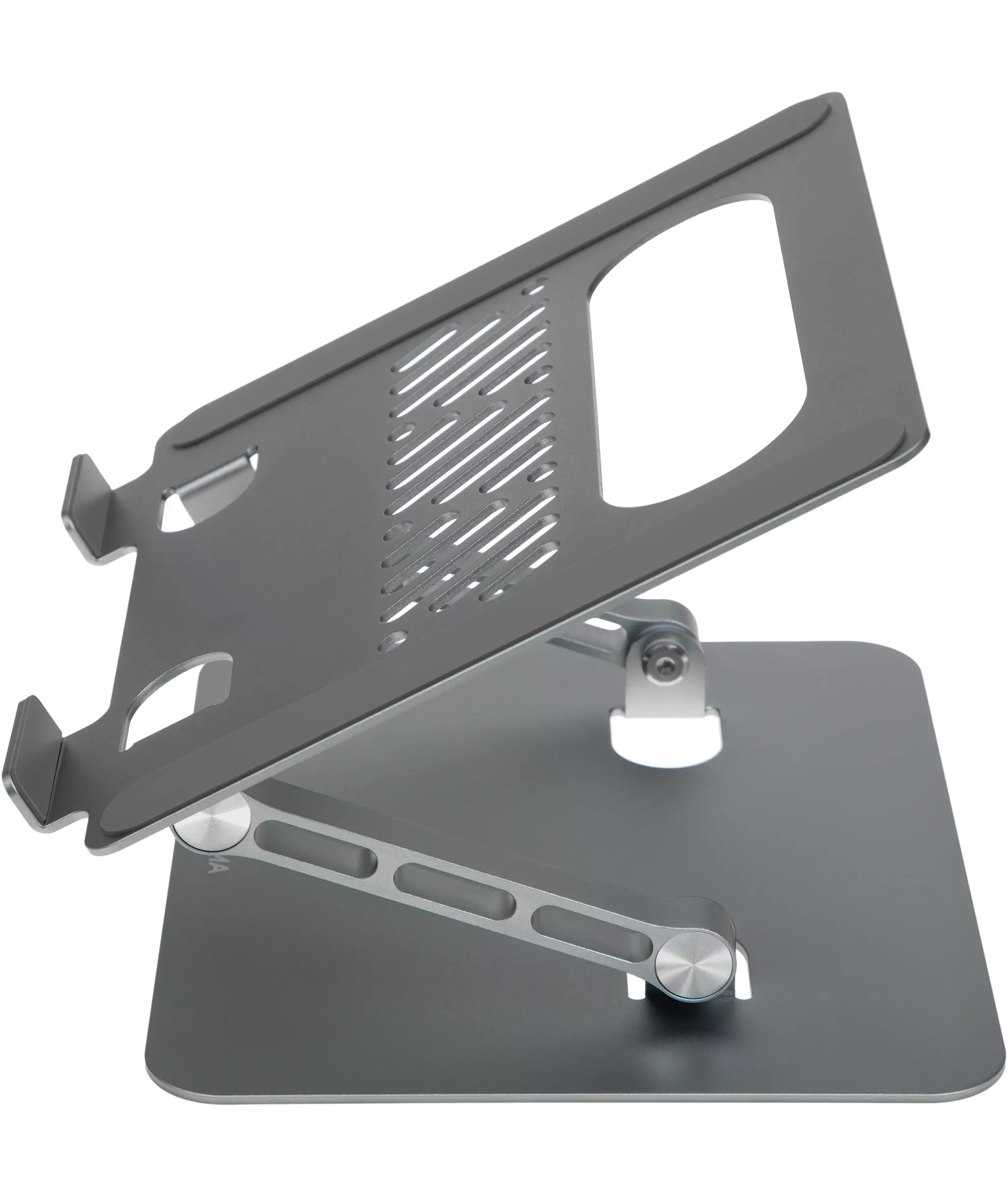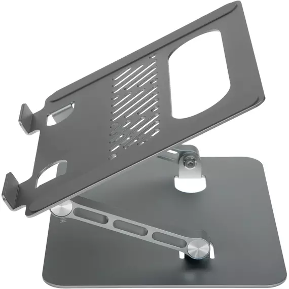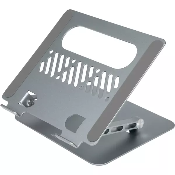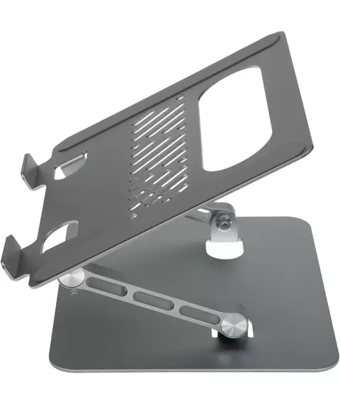 Металлическая подставка для ноутбука с прорезиненными вставками, которые препятствуют скатыванию ноутбука. Широкий диапазон настройки высоты и угла наклона позволяет легко подобрать оптимальное положение для работы. Совместима с ноутбуками диагональю до 17".