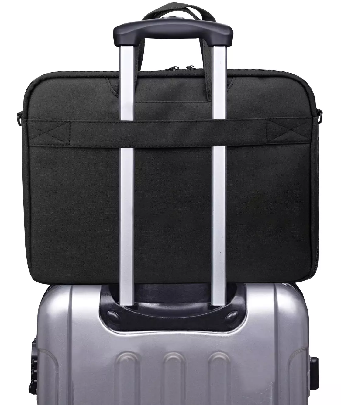 Модель рассчитана на использование с ноутбуками диагональю 15.6 дюйма. Имеется внешний карман на молнии, в котором можно разместить документы формата А4, письменные принадлежности, мышку для ноутбука, блок питания. Сумку можно носить за ручки или на плече, благодаря отстегивающемуся плечевому ремню