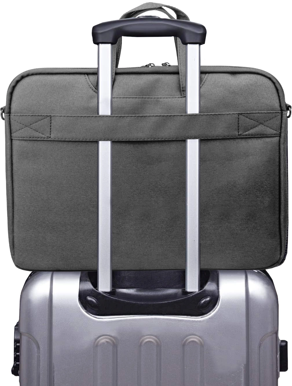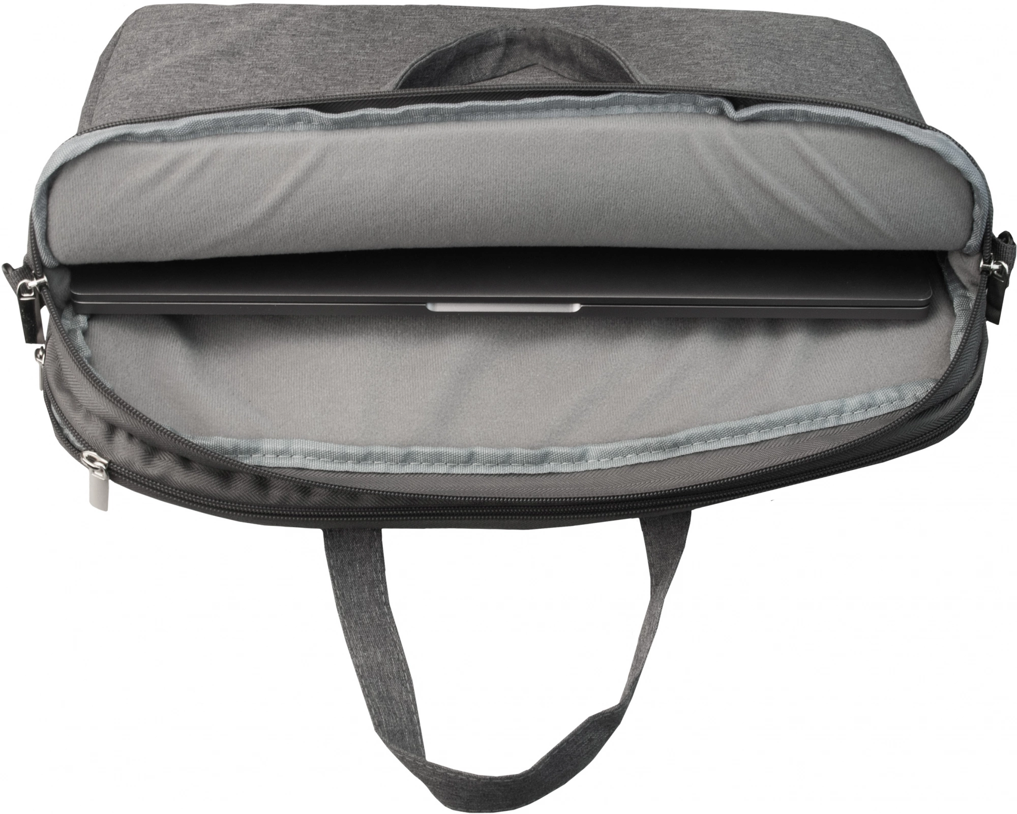 Модель рассчитана на использование с ноутбуками диагональю 15.6 дюйма. Имеется внешний карман на молнии, в котором можно разместить документы формата А4, письменные принадлежности, мышку для ноутбука, блок питания. Сумку можно носить за ручки или на плече, благодаря отстегивающемуся плечевому ремню