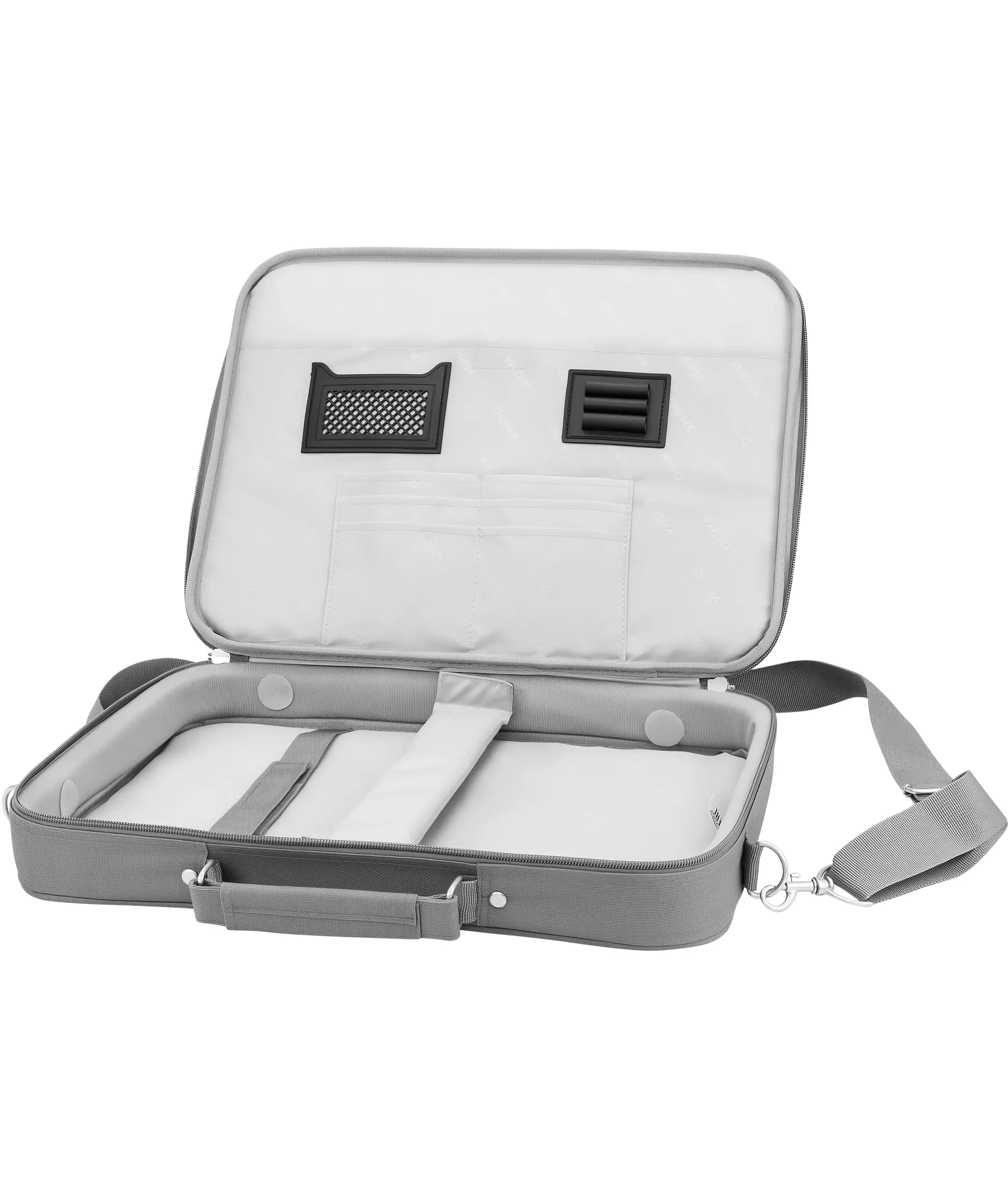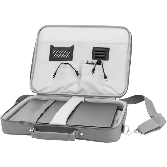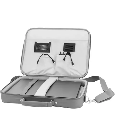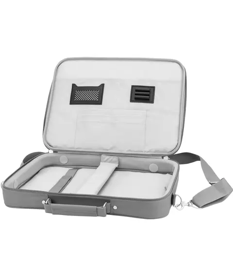 Удобная сумка классического дизайна для ноутбуков с экраном 15,6 дюйма. В основном отделении предусмотрены съемная перегородка и специальный ремешок для плотной фиксации внутри. Также внутри есть несколько полезных отделений для принадлежностей и личных вещей.