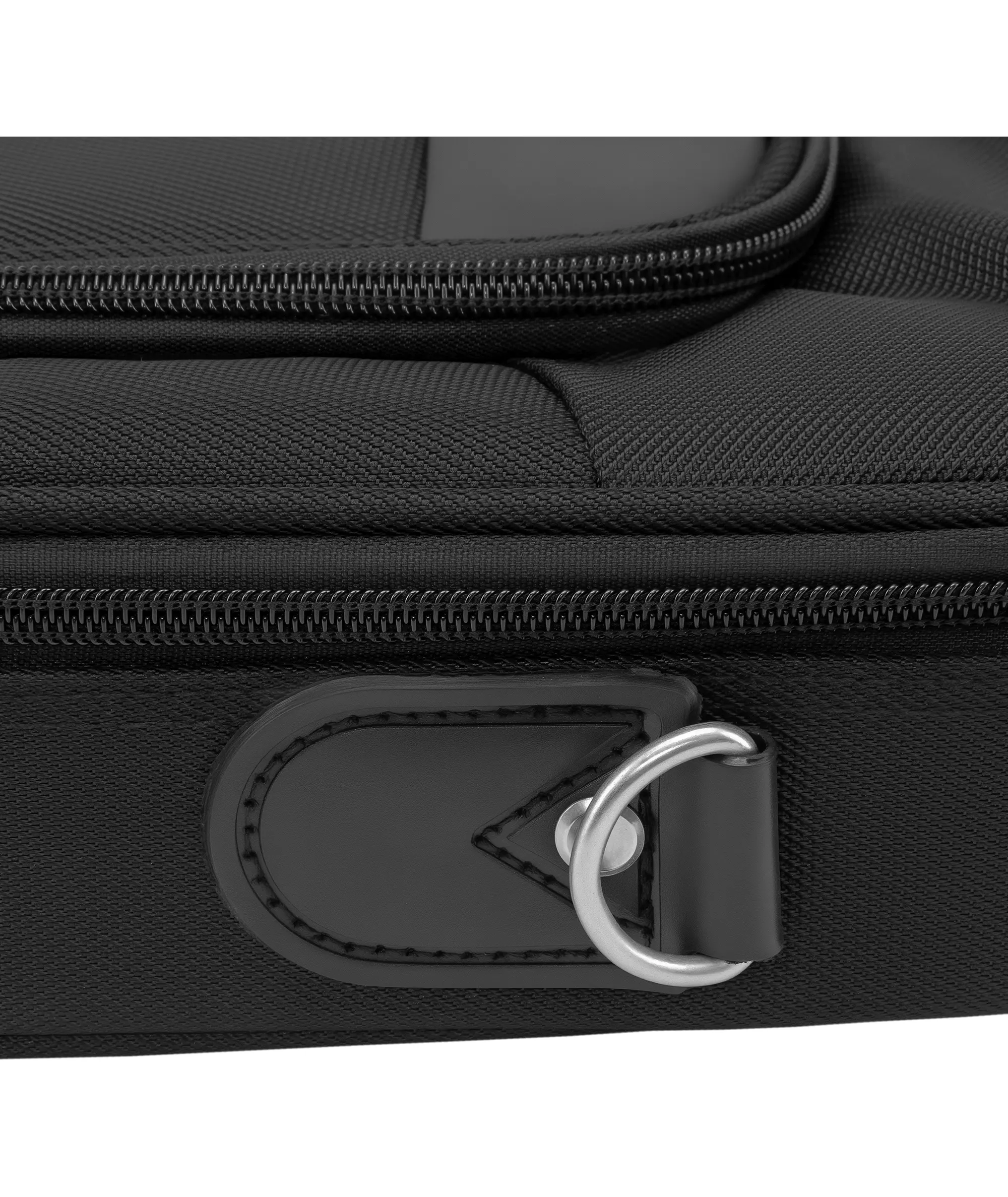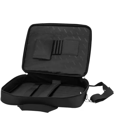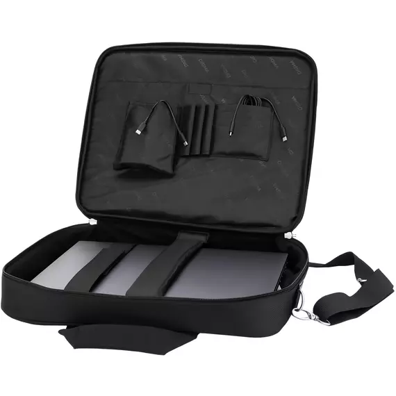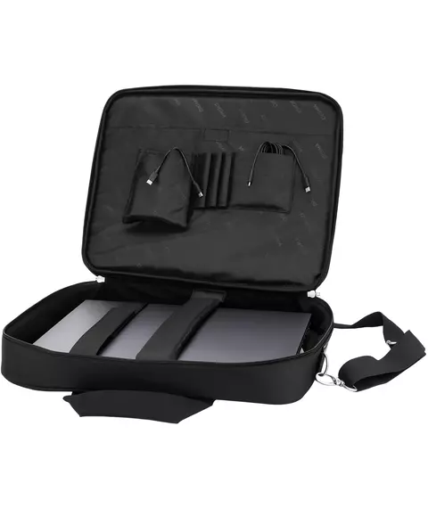 Удобная сумка классического дизайна для ноутбуков с экраном 15,6 дюйма. В основном отделении предусмотрены съемная перегородка и специальный ремешок для плотной фиксации внутри. Также внутри есть несколько полезных отделений для принадлежностей и личных вещей.