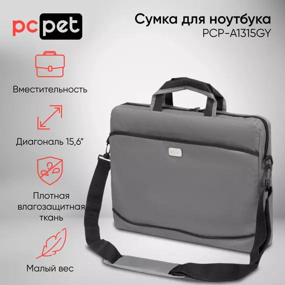 Сумка для ноутбука PC Pet 600D 15.6" серый полиэстер [PCP-A1315GY]
